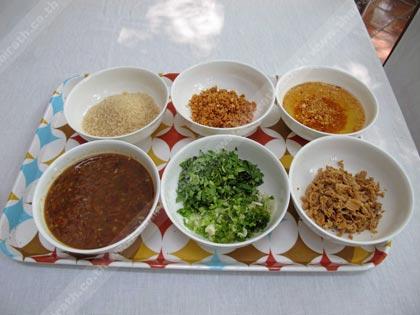 เครื่องปรุงน้ำจิ้ม : เต้าเจี้ยว 6 ชต./น้ำส้มสายชู 3 ชต./น้ำตาล 3 ชต./นํ้าเปล่า 3 ชต./กระเทียม 2 หัว/พริกขี้หนู 1-4 เม็ด หรือตามชอบ.....วิธีทำ นำเครื่องปรุงทั้งหมดมาผสมกัน และตั้งไฟพร้อมคนให้เข้ากัน