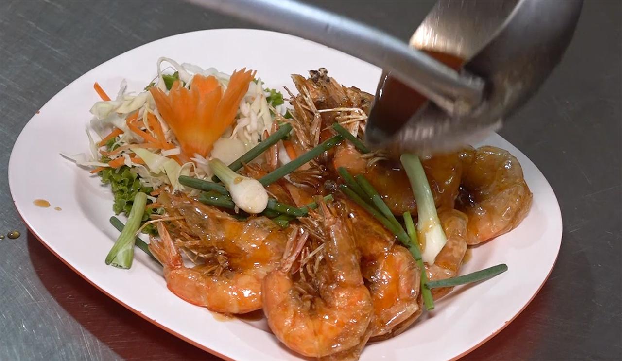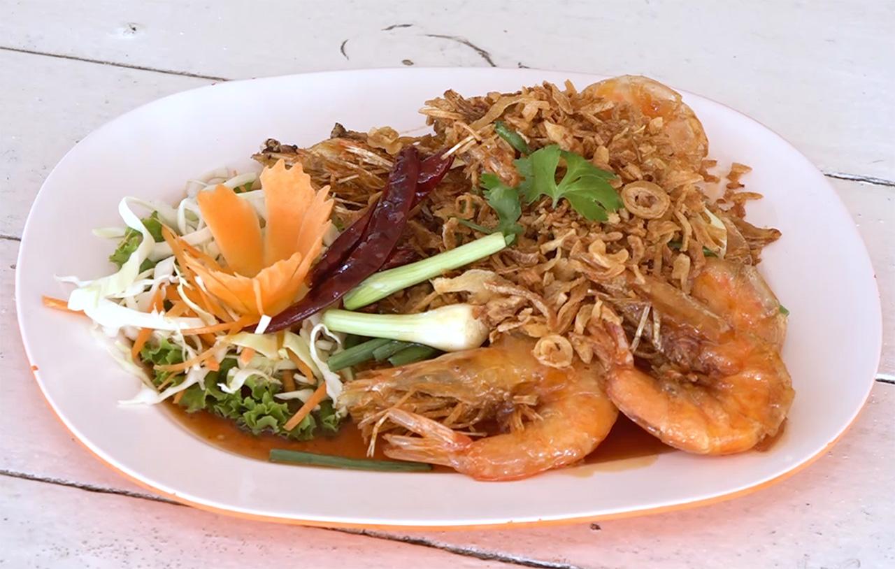มาเริ่มที่ กุ้งทอดซอสมะขาม รสชาติดีมากๆ กุ้งสดเด้งมากๆ และเขาทอดออกมาได้กรอบจนสามารถกินได้ทั้งเปลือกเลย