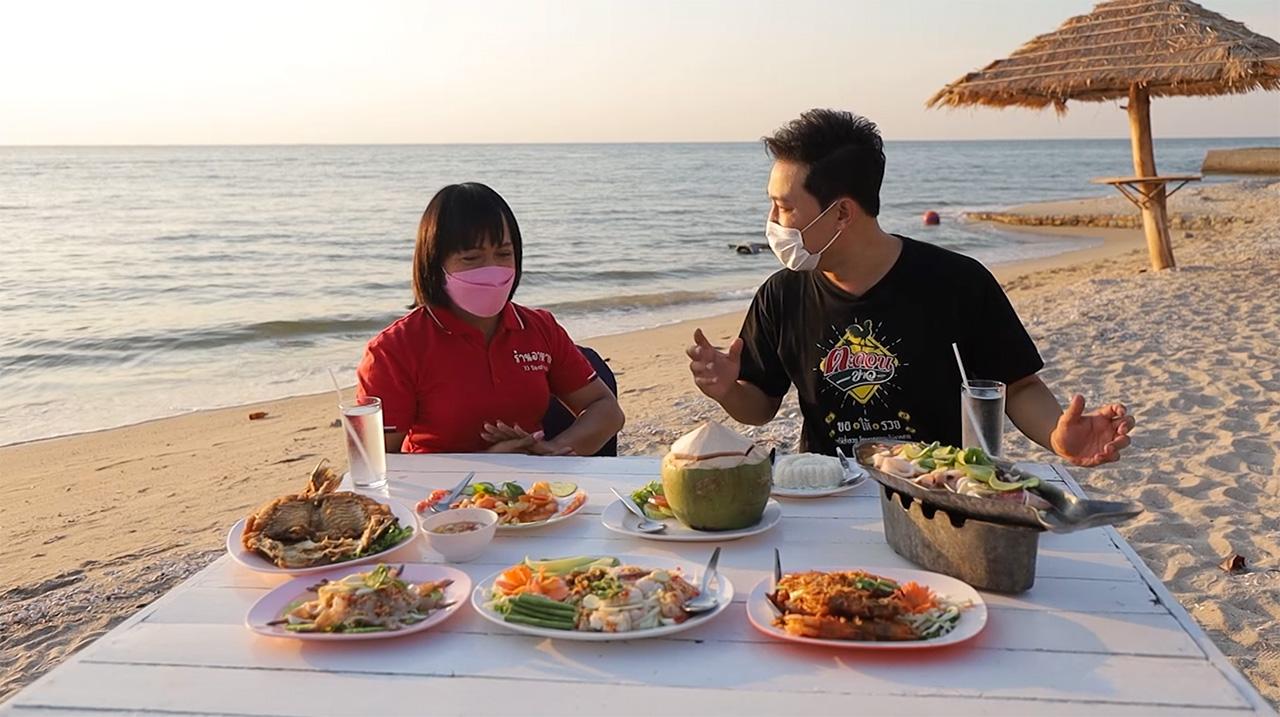 คุณปาร์ตี้ ณิชานันท์ บุญพิทักษ์ ผู้จัดการร้าน 33 ซีฟู้ด เล่าให้ฟังว่า "ร้านเปิดมา 7 ปี แล้ว และที่เรามาเลือกที่ตรงนี้เพราะว่า ติดทะเล และหาดของเราก็ไม่เหมือนใคร เพราะเราทำขึ้นมาใหม่ เด็กๆ สามารถลงไปเล่นได้ ไม่จมแน่นอน"