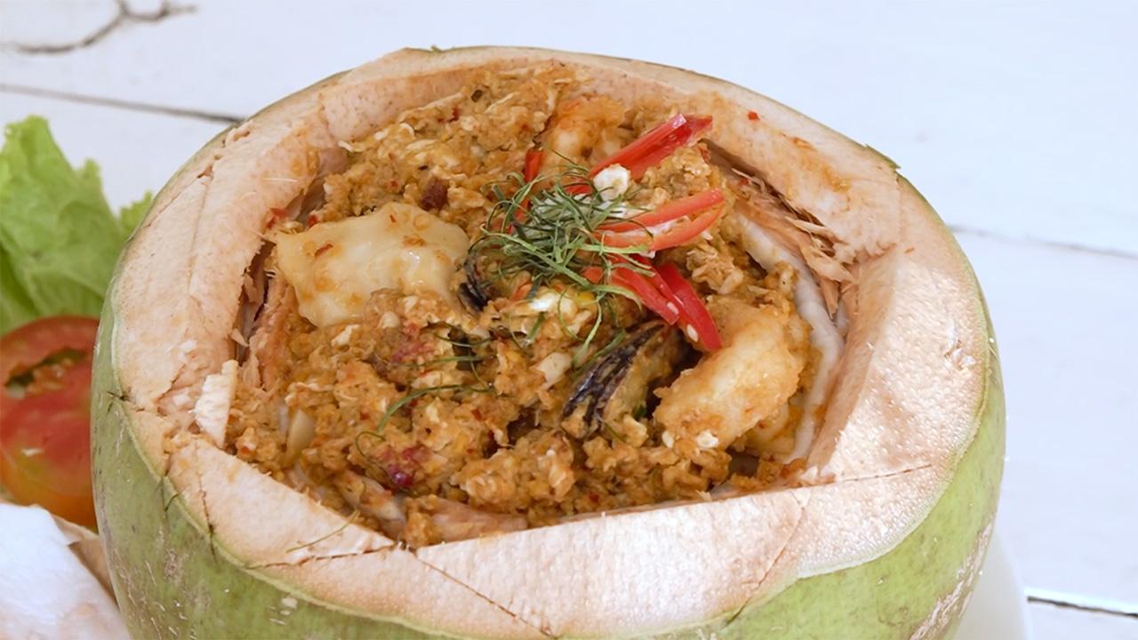 มาต่อที่ ห่อหมกมะพร้าวอ่อน กลิ่นเครื่องแกงหอมมาก แถมยังได้ความหอมจากมะพร้าวและมีเนื้อมะพร้าวด้วย