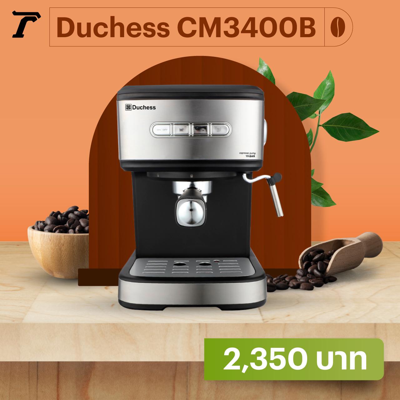Duchess CM3400B เครื่องชงกาแฟแบบก้านโยก ชงกาแฟได้ครั้งละ 5-8 แก้ว ภายในบรรจุน้ำได้ 1.5 ลิตร รูปลักษณ์โมเดิร์น เหมาะสำหรับตั้งในบ้านสมัยใหม่ และเหมาะกับผู้ชื่นชอบกาแฟสดที่มีเวลาน้อย มีพื้นที่จำกัด