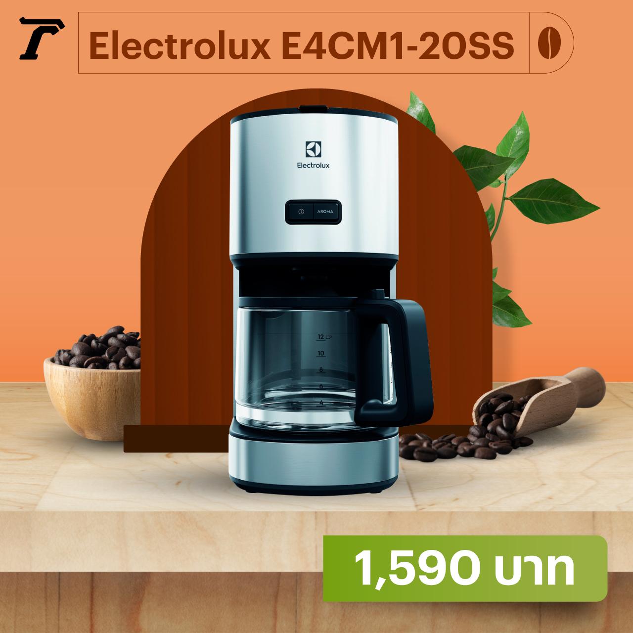 Electrolux E4CM1 เป็นเครื่องชงกาแฟดริป หรือการใช้หม้อต้มน้ำร้อนแล้วผ่านความร้อนมายังเนื้อกาแฟ เหยือกของกาแฟทำกาแฟได้สูงสุด 12 แก้ว ตัวกรองถอดทำความสะอาดได้ มีระบบตัดไฟอัตโนมัติเมื่อไม่ได้ใช้งานนาน 40 นาที และมีระบบอุ่นเหยือก ป้องกันกาแฟติดเหยือก