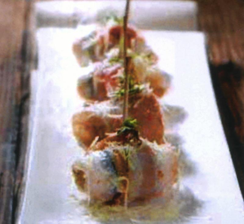 ส่วนผสม : ปลาซิลเวอร์ไซด์ หรืออาจจะใช้ปลาที่มีลักษณะใกล้เคียง / เบคอนแผ่นบาง 1/2 กก. /น้ำมะนาว 8 ลูก / พริกแดงโรโกโต้ (เป็นพริกเปรูที่มีรสชาติเผ็ดร้อนรุนแรง เนื้อหนา มีเมล็ดสีดำ และที่พบเห็นทั่วไปจะมีทั้งสีแดง บางส่วนมีสีเหลือง หรือเขียว) / หัวหอมใหญ่สับละเอียด 1 หัว / กระเทียมสับละเอียด 2 หัว / พาร์เมซาน ชีส 100 กรัม / ผักชีฝรั่ง(พาร์สลีย์) สับหยาบๆ
