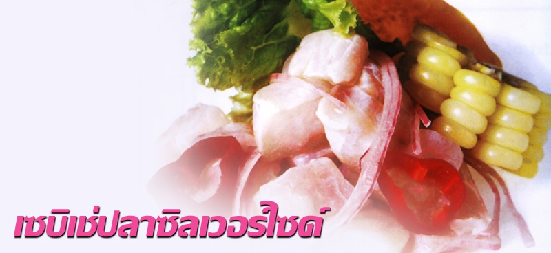 เมนูอาหารวันนี้ยังเป็นอาหารเปรูที่อยากแนะนำให้ได้รู้จักกันค่ะ เพราะสาธารณรัฐเปรูได้ชื่อว่าเป็นแหล่งอาหารทะเลที่มีชื่อ ดังนั้น เมื่อถามชาวเปรูว่า อาหารประจำชาติที่มีชื่อของเขาเป็นอาหารจานไหน พวกเขาต้องตอบเป็นเสียงเดียวกันเลยว่า เซบิเช่ (Ceviche) เป็นเมนูอาหารทะเล ที่มี วิธีการปรุงให้สดและมีคุณภาพ โดยการทำให้สุก ด้วยการบีบมะนาวลงไป แล้ว ปรุงรสด้วยเครื่องเทศและพริก คล้ายๆกับการทำลาบ ก้อย หรือกุ้งเต้น ของคนไทยนั่นเอง การปรุง “เซบิเช่” สามารถเลือกใช้อาหารทะเลได้หลากหลายชนิด ทั้ง กุ้ง หอย ปู ปลา และปลาหมึก อย่างวันนี้เลือกทำ “เซบิเช่” จากปลาซิลเวอร์ไซด์