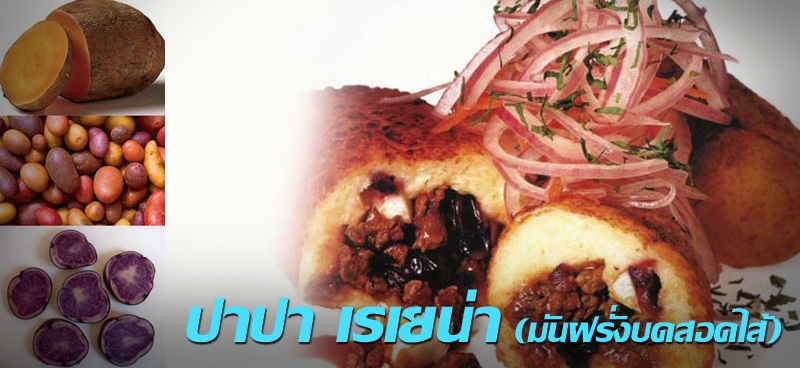 ขอปิดท้ายอาหารประจำชาติเปรู ด้วยเมนูจากมันฝรั่ง เพราะสาธารณรัฐเปรูเป็นแหล่งของมันฝรั่งหลากหลายสายพันธุ์ มีหลักฐานทางโบราณคดี ปรากฏเป็นบันทึกหมายเหตุเกี่ยวกับการค้นพบมันฝรั่งของชาวถิ่นดั้งเดิมในพื้นที่ประเทศเปรู ตั้งแต่ก่อนปีคริสต์ศักราช ซึ่งค้นพบต้นกำเนิดของมันฝรั่งป่า ที่เดิมมีเพียงต้นเดียวในแถบทางตอนใต้ของประเทศเปรู ประมาณศตวรรษที่ 5 ชาวโลกในดินแดนส่วนอื่นๆจึงได้พบและรู้จักพืชสายพันธุ์มันฝรั่ง ซึ่งเชื่อว่าทั่วโลกมีมันฝรั่งอยู่มากถึง 4,000 สายพันธุ์ โดย 3,000 กว่าชนิดสามารถพบได้ในแถบเทือกเขาแอนดีสของเปรู เช่น มันฝรั่งเหลือง (Papa Amarilla) ซึ่งจะพบได้เฉพาะในประเทศเปรูเท่านั้น นอกจากนี้ยังมีสายพันธุ์ที่แบ่งประเภทตามสี จะมีตั้งแต่กลุ่มที่มีสีออกม่วงจนถึงสีฟ้า และสีเหลืองเข้มจนออกสีน้ำตาลจัด ทั้งหมดอาจมีขนาดและผิวแตกต่างกัน บางสายพันธุ์จะมีขนาดเล็กเท่ากับเมล็ดถั่ว ไปจนถึงขนาดใหญ่ประมาณผลส้ม ด้วยเหตุนี้มันฝรั่งจึงมีบทบาทสำคัญในอาหารของชาวเปรู