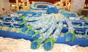 โอกาสนี้ พระองค์ โสมฯ ได้ทอดพระเนตรนิทรรศการเกี่ยวกับประวัติความ เป็นมาของขนมไทยชาววัง และเรือสุพรรณหงส์จำลอง ทำจากขนมไทย ขนาด 7.7 เมตร ประกอบด้วยขนมทองมงคลชาววัง 9 ชนิด พร้อมกันนี้ ยังทรงเยี่ยมชมการ ทำขนมชั้นดอกกุหลาบควีนสิริกิติ์ขนาดใหญ่ที่สุดในโลก ซึ่งประกอบขึ้นจากขนมชั้นจำนวน 7,700 ดอก บรรจงจัดวางเป็นพวงมาลัยรูปหัวใจ ขนาดเส้นผ่า ศูนย์กลาง 5 เมตร เพื่อเฉลิมพระเกียรติและน้อมเกล้าฯถวายแด่สมเด็จพระ นางเจ้าสิริกิติ์ พระบรมราชินีนาถ เนื่องในวโรกาสทรงเจริญพระชนมพรรษาครบ 77 พรรษาในปีนี้