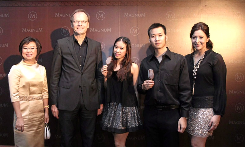 ไอศกรีมนับเป็นหนึ่งในเมนูของหวานที่เติมความสดชื่น เพราะช่วยดับกระหายคลายร้อนได้อย่างเยี่ยมยอด ยิ่งเป็นไอศกรีมที่มีส่วนผสมของช็อกโกแลตชั้นเลิศยิ่งเพิ่มความอร่อยโดนใจ แถมยังกระตุ้นร่างกายให้หลั่งสารแห่งความสุขออกมาอีกด้วย และกลางเดือนมิถุนายนนี้ ดัชนีความสุขของคนชอบกินไอศกรีมจะถึงจุดพีค เมื่อ “แม็กนั่ม” ใหม่! ไอศกรีมหมายเลข 1 ของโลกกำลังจะมาถึงเมืองไทย โดยสองผู้บริหารใหญ่กลุ่มบริษัทยูนิลีเวอร์ มร.บาวเค่อ ราวเออร์ส และ สุพัตรา เป้าเปี่ยมทรัพย์ ทุ่มทุนจัดงาน “ดื่มด่ำสุดล้ำก่อนใครกับแม็กนั่มใหม่” ขึ้น ณ โรงแรมโอคุระ เพลินจิต โดยชวนชาวสุขนิยมระดับเอลิสต์ อาทิ ฐิติกุล อยู่วิทยา, สาริษฎ์ ฮุนตระกูล, ณัฐชยา ไกรฤกษ์, ชวพร เลาหพงศ์ชนะ ฯลฯ มาร่วมดื่มด่ำในรสชาติระดับเวิลด์คลาสของไอศกรีม “แม็กนั่ม” ใหม่! ที่ใช้ช็อกโกแลตเบลเยียมแท้สุดพรีเมี่ยม พร้อมกับเปิดตัวพรีเซนเตอร์สุดฮอต ชมพู่–อารยา เอ ฮาร์เก็ต ด้วย