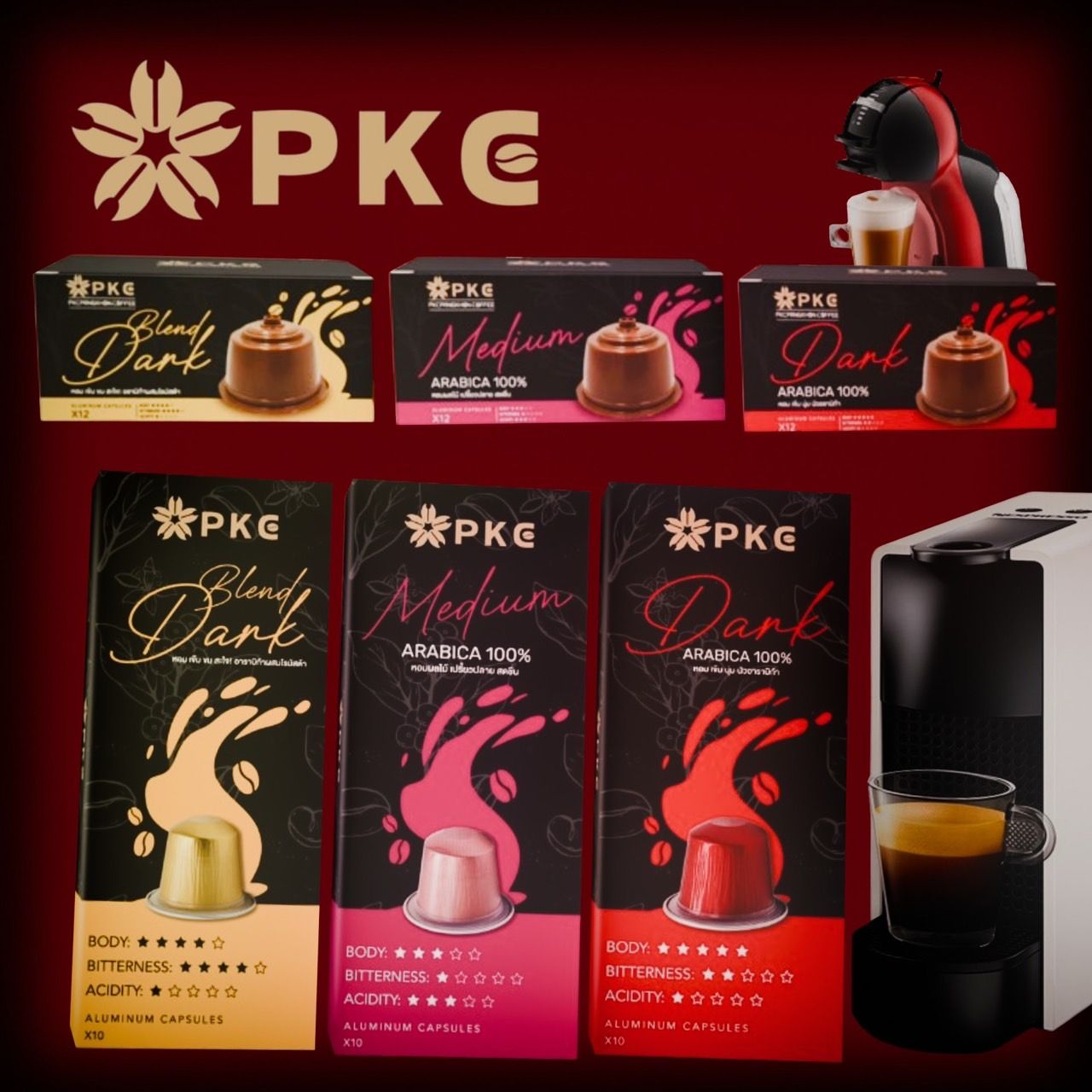 พีเคซี คอฟฟี่ มีกาแฟแคปซูลให้เลือก 3 แบบด้วยกัน คือ