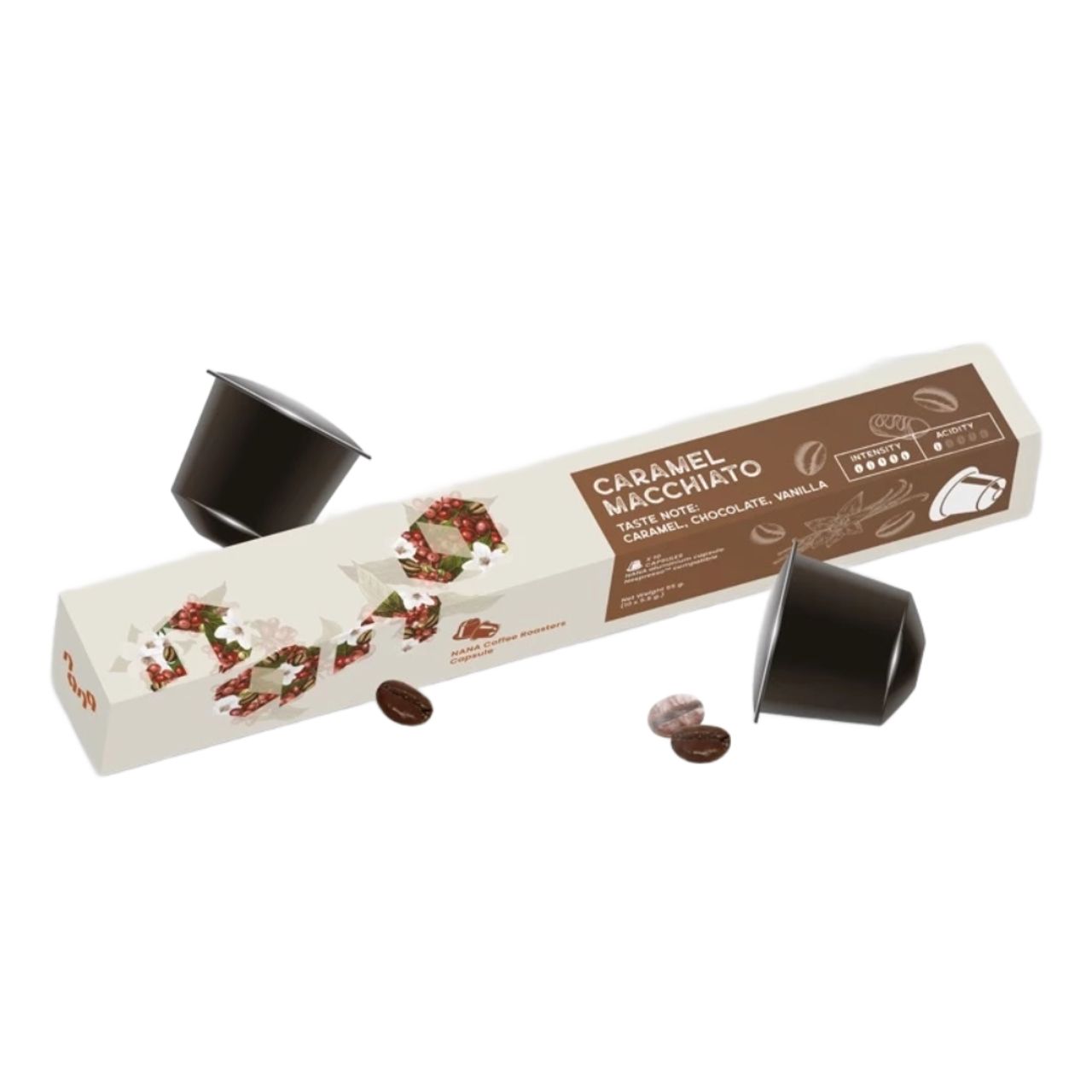 Nana Coffee Roasters ร้านกาแฟที่เหล่าคอกาแฟรู้จักกันเป็นอย่างดี ว่าเป็นแหล่งรวมเมล็ดกาแฟจากทั่วทุกมุมโลก นอกจากเมนูกาแฟ Specialty ของที่ร้านจะขึ้นชื่อแล้ว ยังมีกาแฟแคปซูลเบลนด์พิเศษให้เลือกซื้อด้วย มีทั้งหมด 3 แบบ คือ Caramel Macchiato กาแฟคั่วเข้ม กลิ่นหอมละมุน Bubble Gum Ice-Cream กาแฟคั่วเข้ม ความเปรี้ยวกำลังพอดี และ Fruity Floral Blend ที่เป็นรสชาติ House Blend ยอดนิยมของทางร้าน