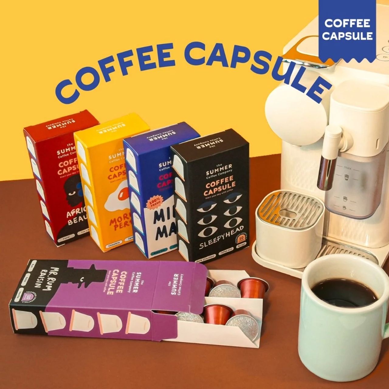 กาแฟแคปซูลจาก The Summer Coffee Company ร้านกาแฟชื่อดังในจังหวัดพระนครศรีอยุธยา กาแฟทำจากเมล็ดอาราบิก้าแท้ 100% บรรจุมาในแคปซูลอะลูมิเนียม ช่วยคงรสชาติและความสดใหม่ของกาแฟได้เป็นอย่างดี แถมยังมาในแพ็กเกจสุดน่ารัก เหมาะกับทั้งชงกินเองหรือจะซื้อเป็นเซตให้เป็นของขวัญก็ได้เช่นเดียวกัน