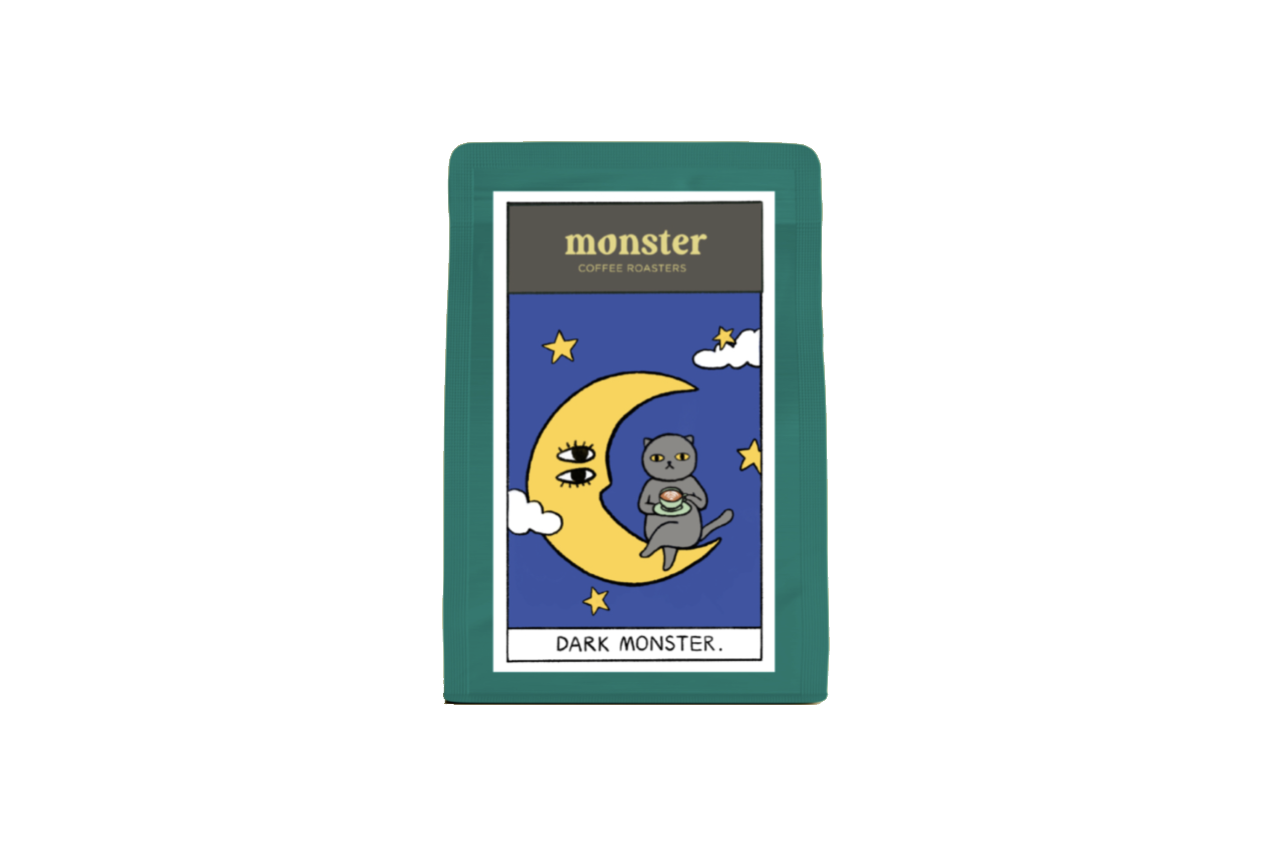 เมล็ดกาแฟ Monster Coffee Roasters กลิ่น Dark Monster เมล็ดกาแฟคั่วเข้มที่ให้ความหอมตามแบบฉบับของกาแฟแบบเข้มข้น ทั้งยังมอบรสชาติกาแฟสไตล์คลาสสิกอิตาเลียน เหมาะกับการนำมาผสมเข้ากับนมเพื่อรังสรรค์เป็นเมนูต่างๆ เริ่มต้นด้วยกลิ่นหอมอ่อนๆ ของดาร์ก ช็อกโกแลต ตามด้วยกลิ่นหอมหวานคล้ายคาราเมลไหม้ตามมา