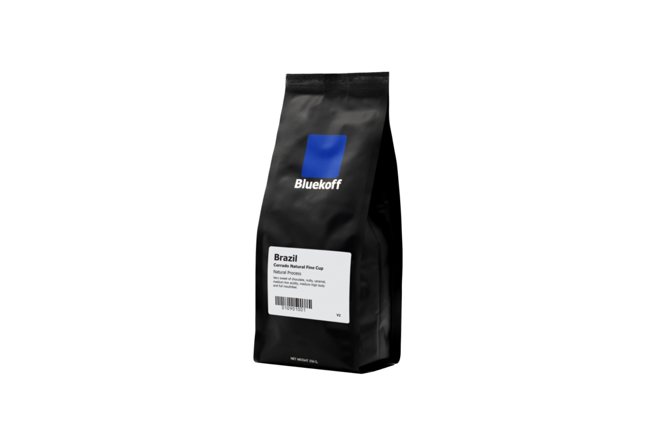 เมล็ดกาแฟ Bluekoff กลิ่น Brazil Cerrado Natural Fine Cup เมล็ดกาแฟคั่วกลางสายพันธุ์พิเศษจากจังหวัด Cerrado de Minas ประเทศบราซิล เหมาะกับการทำเป็นกาแฟสำหรับดริป มาพร้อมกลิ่นหอมอ่อนๆ เข้ากับรสชาติหวานของช็อกโกแลต อมเปรี้ยวเล็กน้อย แต่ยังคงให้ความรู้สึกเข้มข้นจากกาแฟ มีให้เลือกทั้งการคั่วระดับกลางเเละระดับกลางค่อนไปทางเข้ม