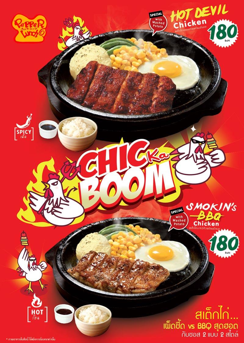 สุดยอดสเต๊กจานร้อนจาก 'เปปเปอร์ ลันช์' มอบรายการอาหารน้องใหม่ ChicKa Boom ที่อร่อยตรงตามชื่อว่า เมนูสเต๊กไก่ชิ้นใหญ่ ปรุงรสด้วยซอสรสชาติสุดจี๊ด 2 แบบ 2 สไตล์ ให้ได้เลือกลิ้มลอง