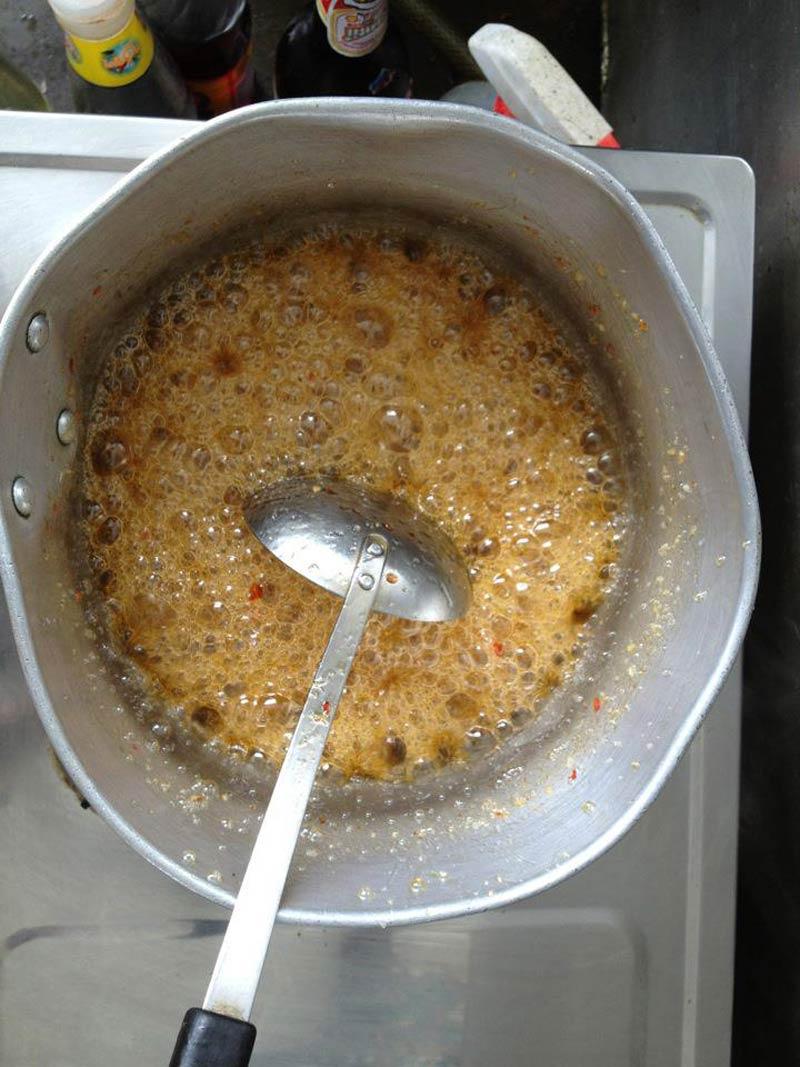 3. รอให้น้ำจิ้มเย็นตัวลง จากนั้นเทใส่ถ้วย และโรยด้วยถั่วลิสงคั่วป่น และพริกป่นตามใจชอบ