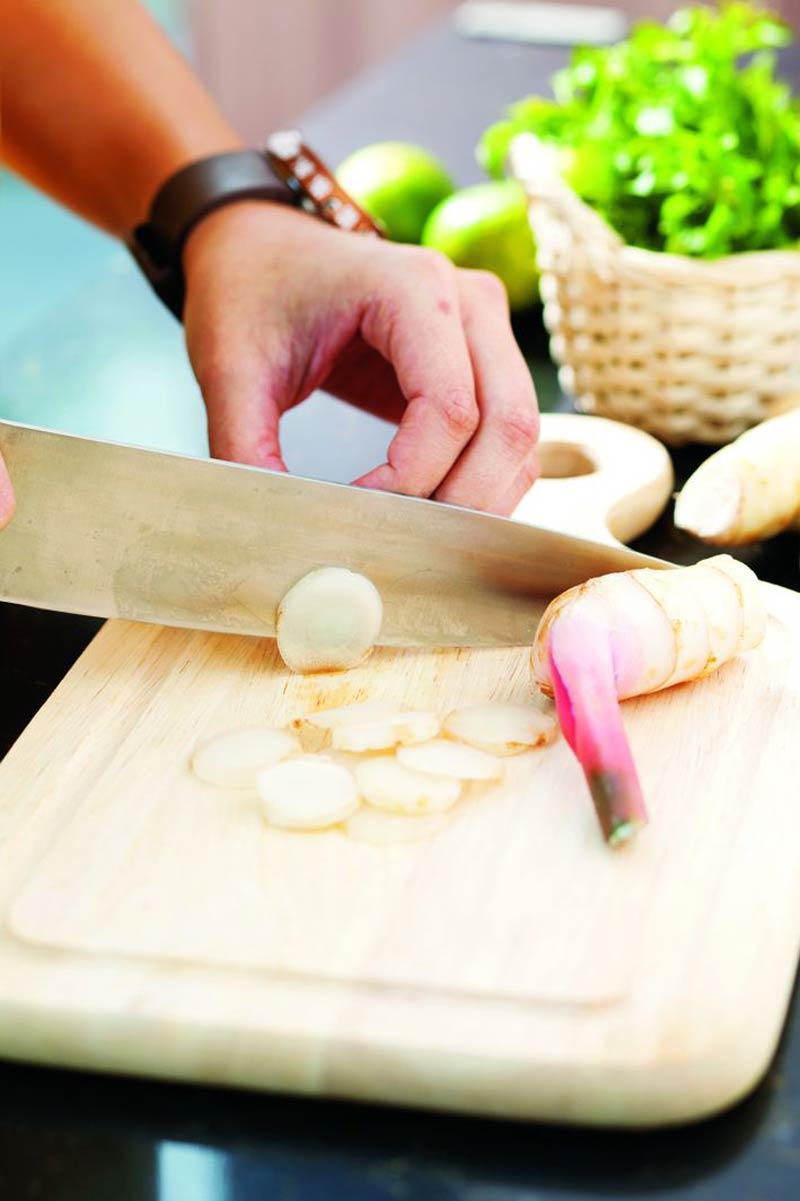 ข่าอ่อนปอกเปลือกหั่นแว่นบาง 1 ช้อนโต๊ะ