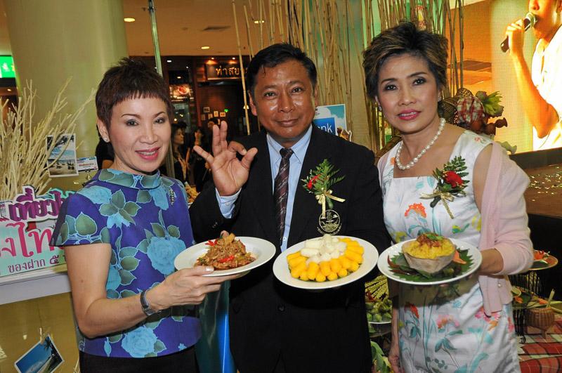 พรหมโชติ ไตรเวช ผอ.ท่องเที่ยวและกีฬา จ.สุราษฎร์ธานี เป็นประธานเปิดงาน “เดอะมอลล์ อร่อยไป เท่ียวไป ทั่วเมืองไทย ครั้งที่ 4” โดยมีนงนุช นามวงศ์ และมาลินี สุตังคานุ พาชิมของอร่อย.