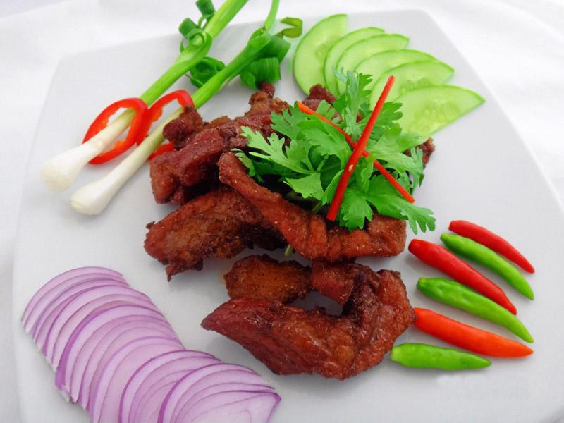 สำหรับผลิตภัณฑ์ดาวเด่นประจำโครงการฟาร์มตัวอย่างฯ ซึ่งจะนำมาเป็นวัตถุดิบในการปรุงเมนูเฉลิมพระเกียรติฯ เพื่อบรรจุในเมนูของ 100 ร้านอาหารยอดนิยมตลอดเทศกาล 1 จานจากใจ มีอาทิ “หมูจินหัวแดดเดียว” และ “แฮมรมควัน” ซึ่งเนื้อนุ่ม สีสวยสด และกลิ่นหอมมาก รัฐบาลจีนได้น้อมเกล้าฯถวายพ่อพันธุ์และแม่พันธุ์แด่สมเด็จพระนางเจ้าฯ พระ บรมราชินีนาถ เมื่อปี 2542 ซึ่งในเทศกาลครั้งนี้ได้รับการคัดสรรจากร้าน Lee Cafe’ นำมาปรุงเมนูหมูจินหัวคั่วพริกกระเทียม ส่วนร้านเสี่ยวหลงเปา เนรมิตเป็นเมนูฮ่องเต้ “หมูพันชั้น” สำหรับ “เป็ดอี้เหลียง” ซึ่งรัฐบาลจีนได้น้อมเกล้าฯถวายแด่สมเด็จพระนางเจ้าฯ พระบรมราชินีนาถ ในปี 2543 ถูกจับจองโดยร้าน S&P เพื่อปรุงเป็นเมนูสลัดเป็ดรมควันรสเลิศ ขณะที่ร้าน Lee Cafe’ นำเสนอเป็นเมนูลาบเป็ดย่าง, แกงเผ็ดเป็ดย่าง และเป็ดย่างผัดกะเพรา ส่วนร้านเรดซันเลือก “ปลาเทราต์” เป็นโจทย์ในการปรุงเมนูน้ำพริกปลาเทราต์รมควัน ขณะที่ร้าน Inn-Chan นำ “เห็ดฮังการี มาปรุงขนมจีนน้ำยาเห็ด กับเห็ดแดดเดียว และจานเด็ดที่ไม่ควรพลาดยังรวมถึงเมนูดอกชมจันทร์สอดไส้ทอด และข้าวอบพะแนงกุ้งพริกหวานไฮโซๆของร้าน Patara.