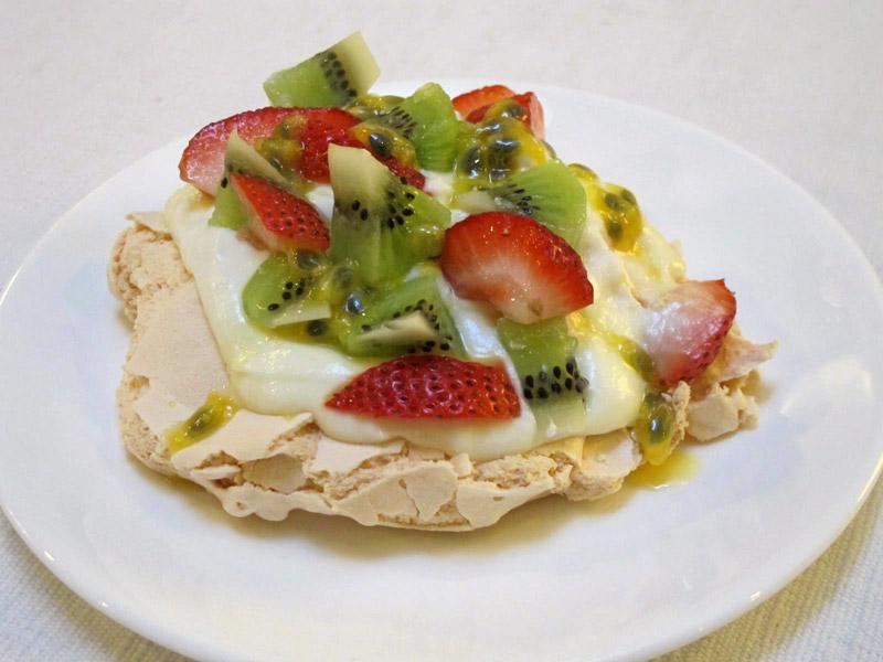 วิธีประกอบ นำครีมที่มีส่วนผสมของวิปครีมกับไอซิ่ง มาราดบนเมอแรง แล้วแต่งหน้าให้สวยงามด้วยผลสตรอเบอร์รี่ กีวี หรือเสาวรส เพราะรสเปรี้ยวของผลไม้จะช่วยเบรกความหวานลงได้ถ้าเป็นครีมชีสแมสคาร์โปเน่ผสมโยเกิร์ต ให้ใช้เมอแรงสองอันประกบ แล้วราดด้วยสตรอเบอร์รี่ ซอส หรือราสเบอร์รี่ ซอส และประดับให้สวยงามด้วยผลเบอร์รี่พาฟโลวา.