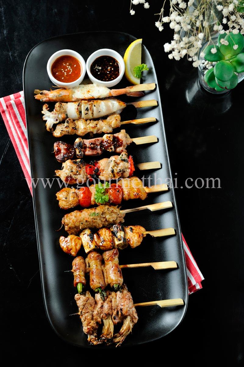 จานสุดท้ายแชร์กันได้เต็มที่กับ “Izakaya Platter” เอ็นข้อไก่ หมูสามชั้นกับมะเขือเทศ ลูกชิ้นเนื้อ หมูกับกระเทียม สะโพกไก่กับพริกหยวก ปลาหมึกยัดไส้หมูสับทรงเครื่อง เบคอนพันเห็ดเข็มทอง เบคอนพันหน่อไม้ฝรั่งและพริกชี้ฟ้า กุ้งราดซอสทาร์ทาร์ แซลมอนหมักมิโซะกับหัวหอมญี่ปุ่น อิซาคายาทุกอย่างจะถูกนำไปย่างแล้วกินกับโชยุงาขาว พริกสดปั่น และเลมอน