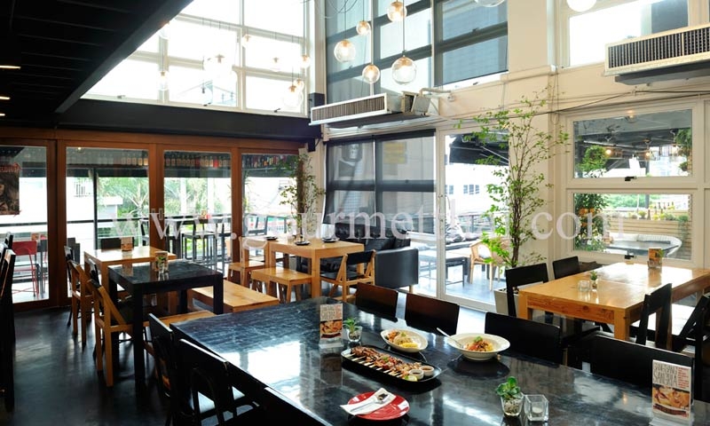 ก้าวแรกที่เข้าสู่ร้าน Meeting Room บอกเล่าบรรยากาศร้านอาหารเล็กๆ ในกรุงโซลและกรุงโตเกียว ผ่านโต๊ะไม้ขนาดเล็กที่เลือกใช้เก้าอี้คละสี แบบ และรูปทรง ประดับด้วยหลอดไฟห้อยระย้านับสิบดวง เพื่อสื่อถึงประกายไอเดียที่หลากหลายของกลุ่มเพื่อนสนิท ประดับผนังโดยรอบ ด้วยภาพวาดบรรยากาศการกินดื่มที่สนุกสนาน ส่วนระเบียงด้านนอกจำลองเป็นสวนเล็กๆ ที่เคยสัมผัสจากคาเฟ่กลางเมืองท่องเที่ยว