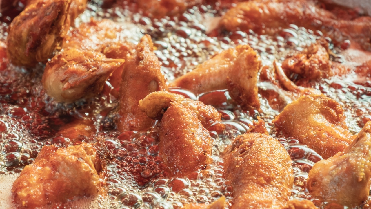 - ครั้งที่ 2 ทอดไล่ความชื้น สร้างความกรอบ: เร่งไฟให้แรงขึ้นจนน้ำมันร้อนจัด นำไก่ที่พักไว้ลงทอดอีกครั้งอย่างรวดเร็ว ใช้เวลาเพียง 1-2 นาที จนหนังไก่มีสีเหลืองทองอร่ามและกรอบฟู