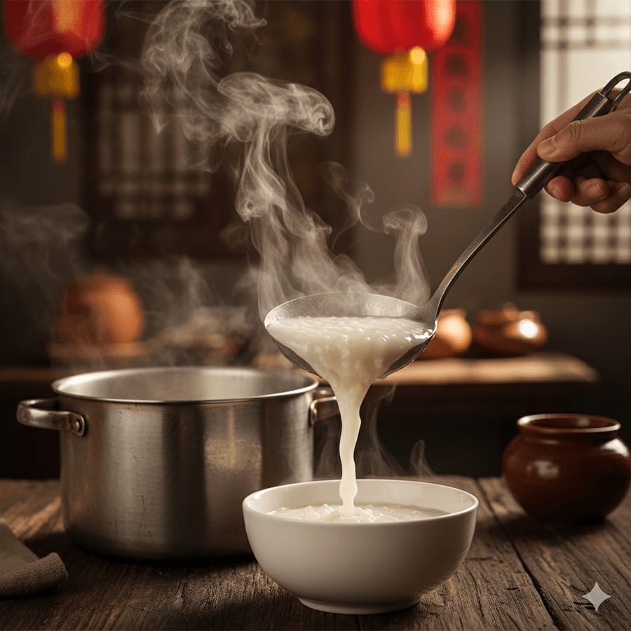 - หากน้ำข้าวดูข้นเกินไปหรือไม่ท่วมข้าว ให้เติมน้ำสะอาด (น้ำดื่ม) ลงไปเพิ่มเล็กน้อย พอให้ท่วมข้าวประมาณ 2-3 เซนติเมตร