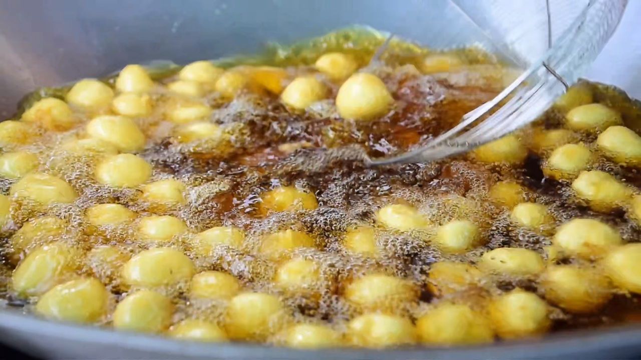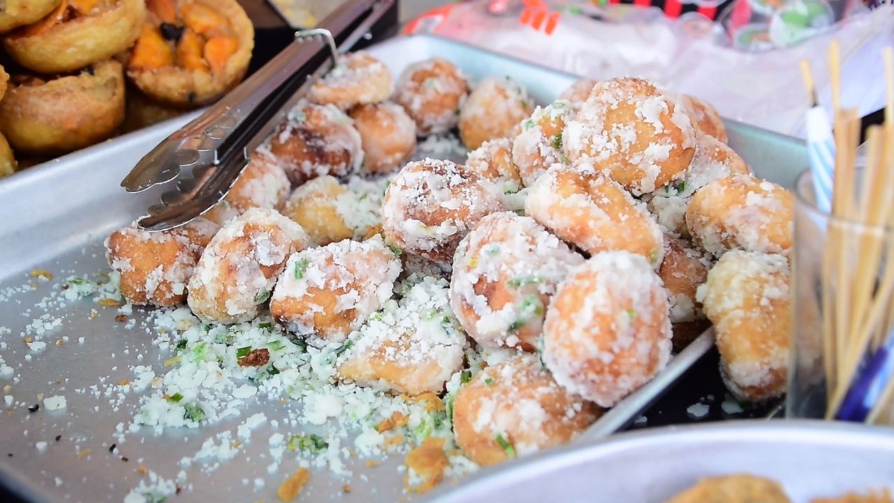 - ขาหมูทอด ที่ไม่ใช่ขาหมู แต่เป็นแป้งกับมันผสมกัน กินกับน้ำจิ้มเต้าหู้ทอด