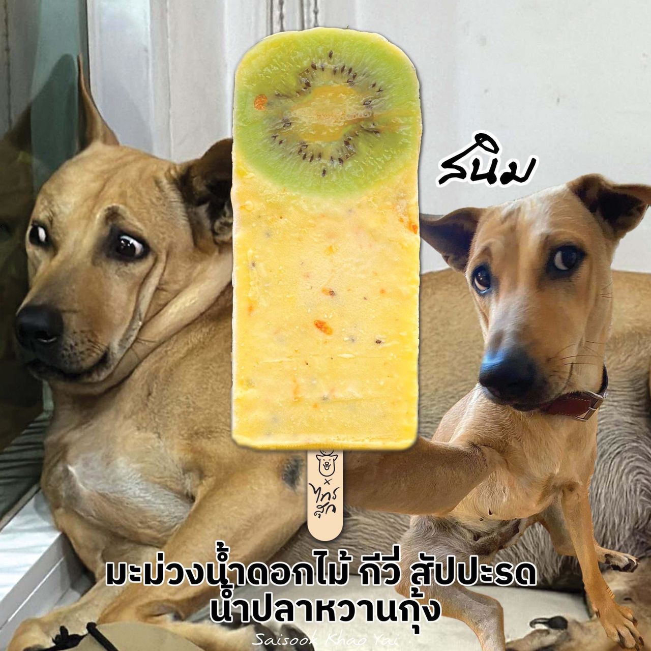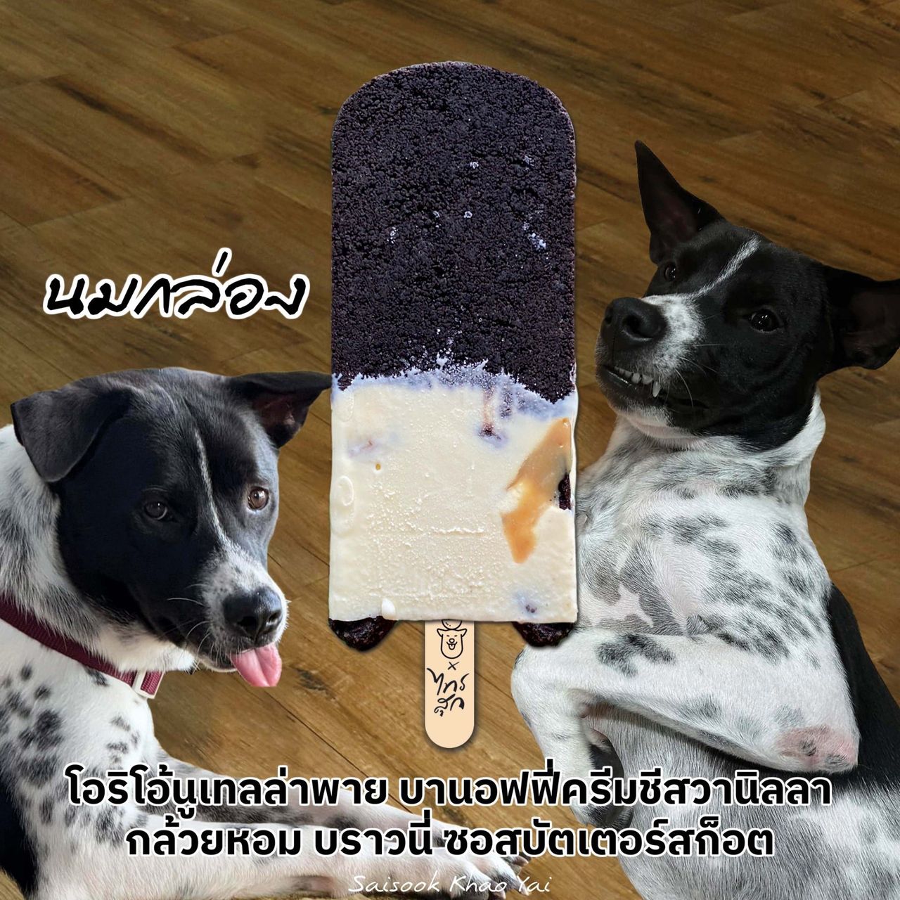 ไฮไลต์คือไอศกรีมที่ตั้งชื่อตามคาแรกเตอร์น้องหมา เช่น กลูต้า, เบต้า, ลูกชิ้น, คอลลัมโบ้, เมิร์ลทาสแมว, นวลการ์ดัน, นมกล่อง ตามด้วยไอศกรีมชื่อแนวๆ อย่างหญ้าทะเล และภูเวียงโกซอรัส สิรินธรเน