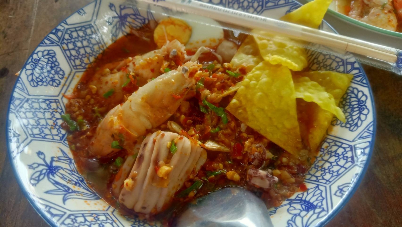 คูเมืองแคมป์ ร้านก๋วยเตี๋ยวต้มยำทะเลจากสกลนคร ร้านที่ทำให้เราได้อิ่มอร่อยกับอาหารทะเล กุ้งและหมึกตัวโตๆ จากมหาชัย ในราคาเริ่มต้น 60 บาท