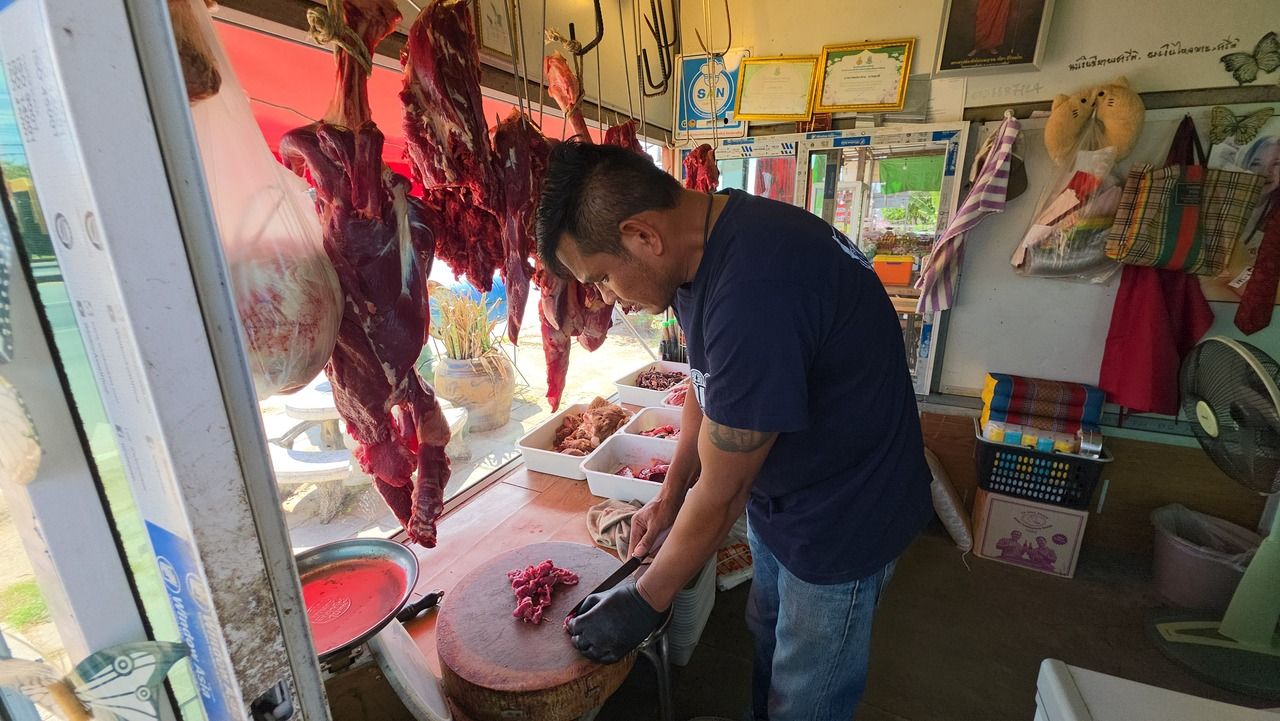 นอกจากเมนูก๋วยเตี๋ยวแล้ว ที่เขียงยังจำหน่ายเนื้อสดคุณภาพดีราคากิโลกรัมละ 250 บาท หากสั่งจำนวนมากเพื่อทำอาหารตามงานต่างๆ ทางร้านคิดในราคาส่งเพียงกิโลกรัมละ 200 บาท