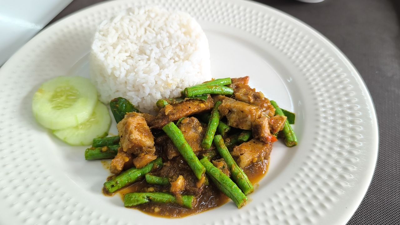 นอกจากหมูกรอบแล้ว อีกหนึ่งไฮไลต์คือ ซอสปรุงรส ที่เป้ลงมือเคี่ยวเองทุกตัว ไม่ว่าจะเป็นซอสแกงเขียวหวาน ซอสพะแนง ซอสมะขาม หรือซอสผัดผงกะหรี่ รสชาติเข้มข้นถึงเครื่องแกงแท้ๆ