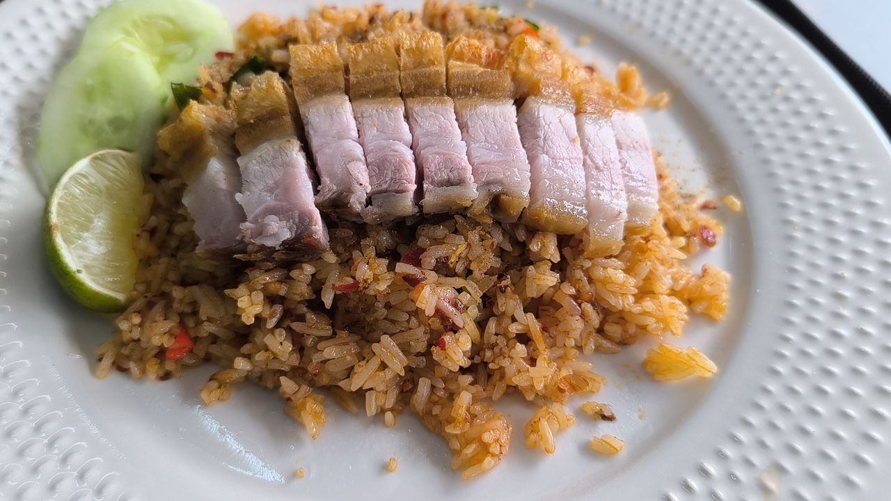สำหรับเมนูแนะนำห้ามพลาด ได้แก่ หมูกรอบคั่วพริกเกลือ, ข้าวผัดต้มยำหมูกรอบ และกะเพราหมูกรอบ ราคาเริ่มต้นเพียง 50 บาท หรือใครอยากซื้อหมูกรอบเปล่าไปทานเล่น ก็มีขายเริ่มต้นขีดละ 70 บาท