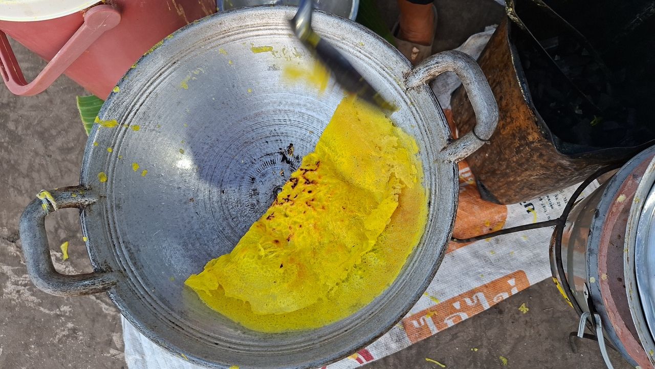 บรรยากาศที่ตลาดถนนคนเดินหนองพระแล ตำบลทุ่งยั้ง อำเภอลับแล จังหวัดอุตรดิตถ์ ที่แม้จะมีผู้คนคึกคักจากทั่วสารทิศ แต่จุดที่ดึงดูดสายตาและมีลูกค้ามายืนมุงเรียงแถวสั่งจองกันอย่างต่อเนื่อง คือ ร้านขนมเบื้องเล็ก ๆ ที่มีเสน่ห์ดึงดูดใจ