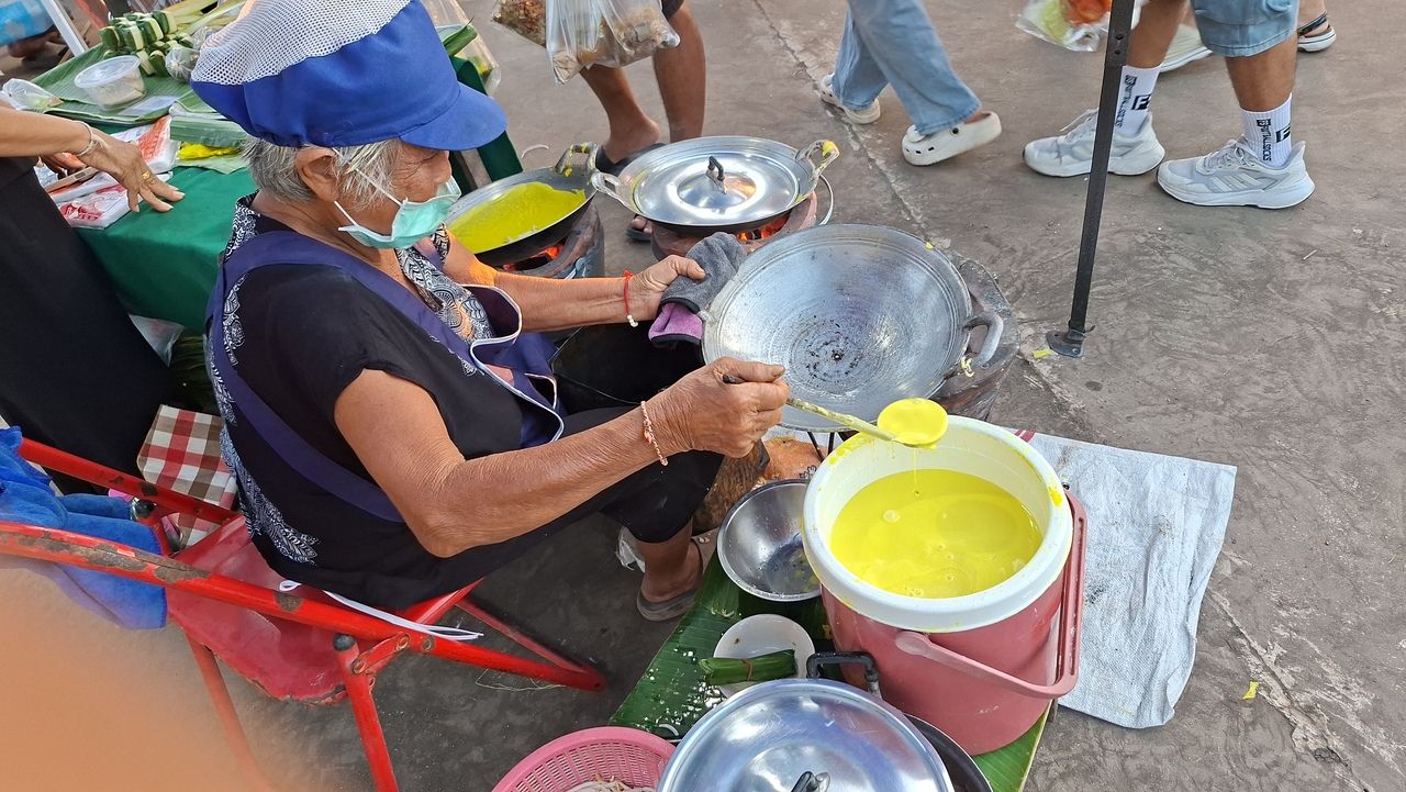 ร้านดังกล่าวคือร้านของ ลำเพย ขวัญมุข หรือ ป้าเพย วัย 78 ปี ที่กำลังง่วนอยู่กับการทำขนมเบื้องตามออเดอร์ของลูกค้าจนมือเป็นระวิง ลูกค้าบางคนต้องสั่งจองทิ้งไว้ก่อน แล้วไปเดินจับจ่ายซื้อของที่อื่น จึงย้อนกลับมารับขนมเบื้องที่สั่งไว้ภายหลัง