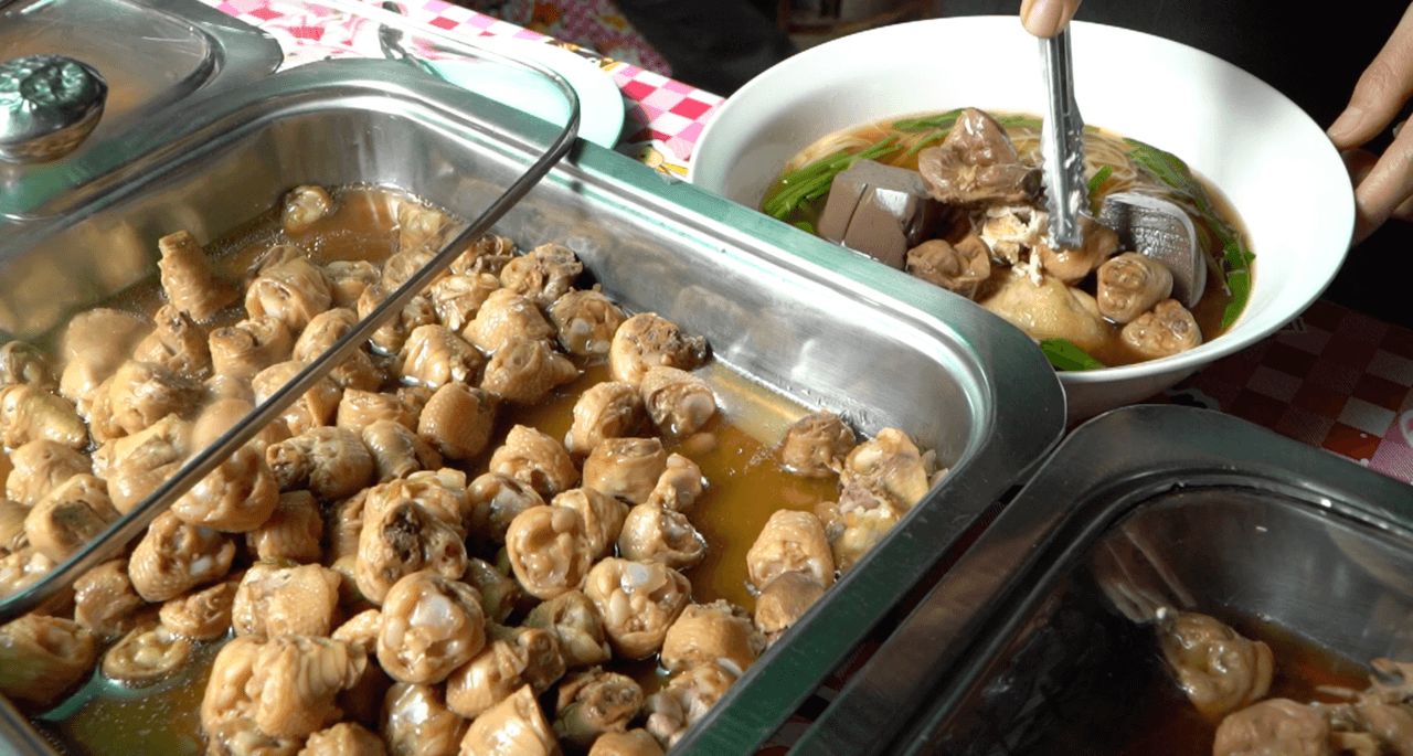 จุดเด่นของที่นี่คือ บุฟเฟต์ไก่ที่ตักได้ไม่อั้น โดยลูกค้าสามารถตักส่วนประกอบของไก่ได้เองแบบไม่ยั้ง และเติมได้ตลอด เมื่อหมดก็เติมใหม่ทันที ซึ่งเมนูเนื้อไก่มีให้เลือกมากมาย เช่น ไก่ฉีก, ข้อไก่, ปีกไก่, กึ๋นไก่, คอไก่ และเลือดไก่ ที่มีรสชาติเด็ด โดยชิ้นส่วนไก่มีความนุ่มเปื่อย ไม่เหนียว ส่วนน้ำซุปนั้นหอมเครื่องเทศ กลมกล่อมลงตัว