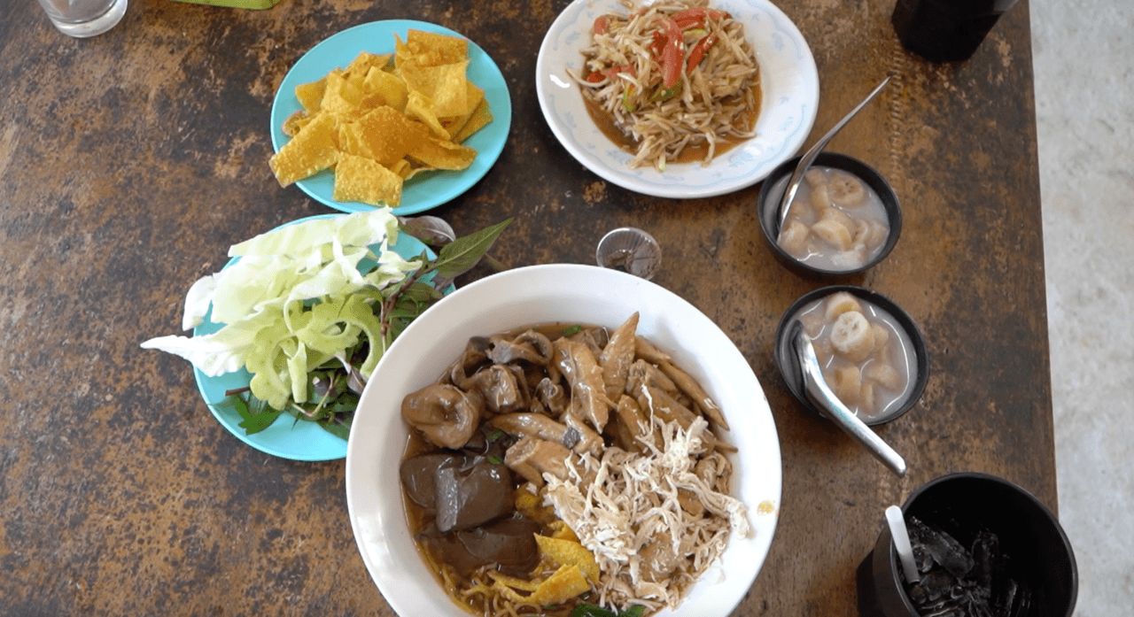 โดยร้านก๋วยเตี๋ยวบุฟเฟต์ริมน้ำ ตั้งอยู่ที่ซอยแก้วคุณ (หน้าหมู่บ้านสุนทราวัล) ริมคลองส่งน้ำ เขตเทศบาลเมืองหนองคาย ตักได้ไม่ยั้ง ส่วนประกอบไก่เต็มโต๊ะ