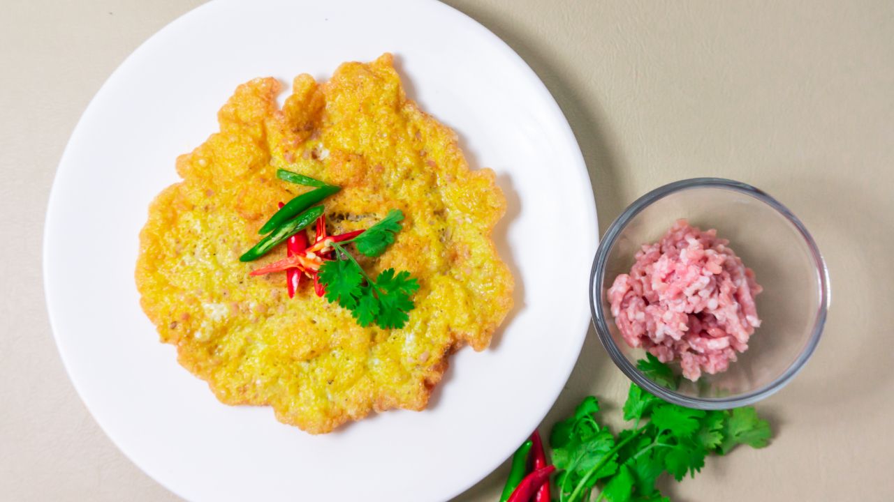 - ใช้หมูสับปริมาณพอดี หากใส่เยอะเกินไป ไข่จะฟูยาก