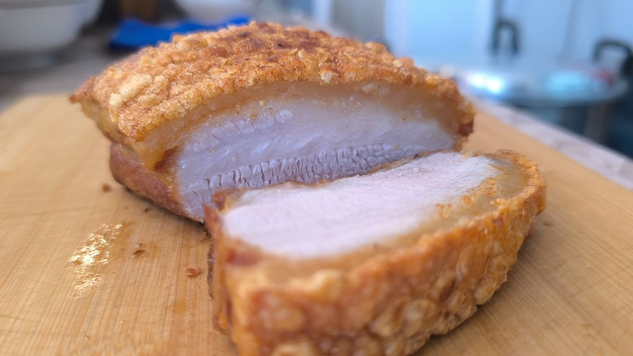 แต่ไฮไลต์ที่พลาดไม่ได้เลยคือ "หมูกรอบ" ที่ทางร้านคัดสรรหมูสามชั้นเกรด A เท่านั้น ผ่านกรรมวิธีสุดพิถีพิถัน เริ่มจากนำไปต้มจนเกือบสุก นำไปอบไล่ความชื้น แล้วจึงนำไปทอดจนได้หนังที่ฟูสวย กรอบกรุบสู้ฟัน แต่เนื้อในยังคงความนุ่มชุ่มฉ่ำ ไม่แข็งกระด้าง