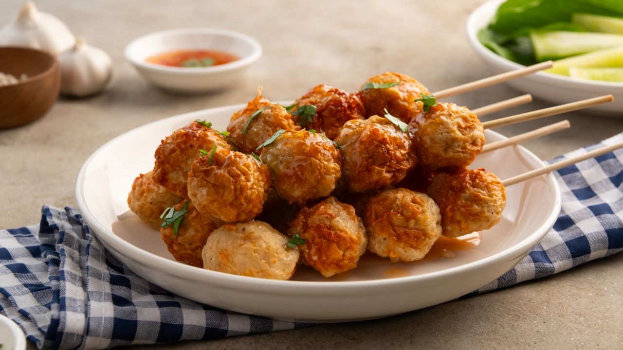 รวมลูกชิ้นหมู ลูกชิ้นปลา และลูกชิ้นเอ็น ทอดจนผิวกรอบ สีสวยน่ากิน กินคู่กับน้ำจิ้มหวานหรือน้ำจิ้มเผ็ด เป็นเมนูที่ทำง่ายและประหยัดงบ เหมาะกับปาร์ตี้ที่มีแขกหลายคน