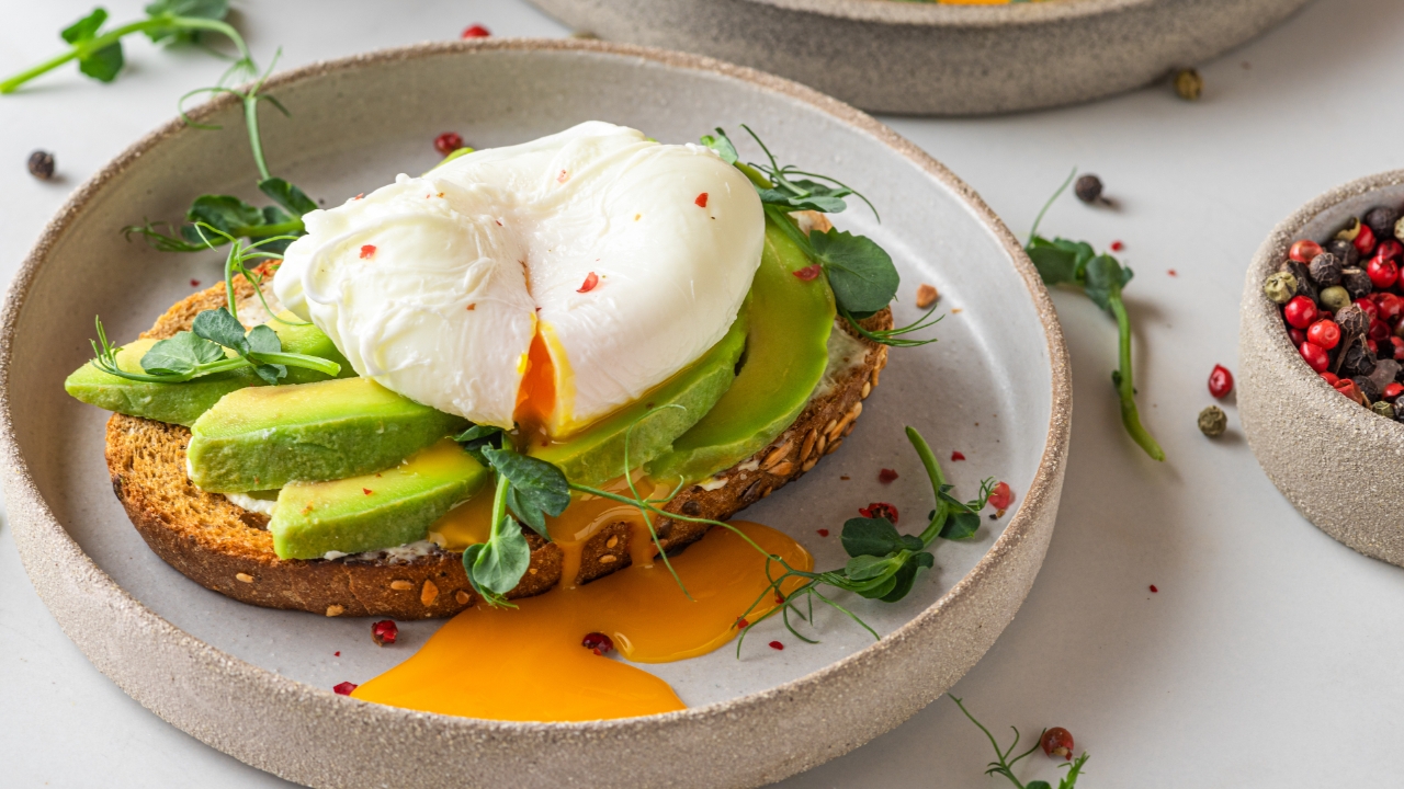 - วิธีทำ: ต้มไข่ในน้ำเดือด 7 นาทีแล้วน็อคน้ำเย็น ปอกเปลือกผ่าครึ่ง วางบนอะโวคาโดฝาน โรยพริกไทยเล็กน้อย