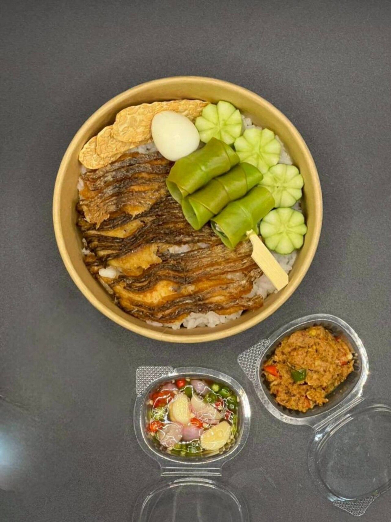 เมนูเด็ด: ข้าวหน้าปลาแกะ (ปลานิลทอด), เทมเป้อบกรอบ, น้ำพริกใบชะมวง