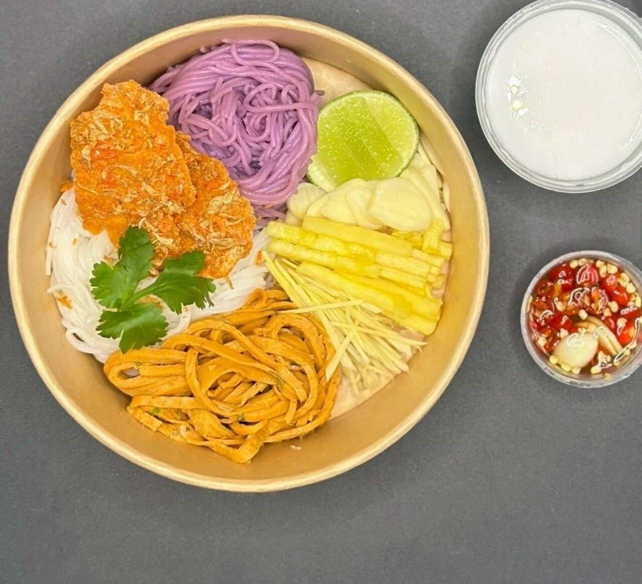 การรื้อฟื้นอาหารไทยโบราณที่หาทานยากให้กลับมาโลดแล่นอีกครั้ง น้องๆ นำเสนอ "ขนมจีนซาวน้ำ" ในรูปลักษณ์ที่ทันสมัยขึ้น เพื่อเชื่อมโยงคนรุ่นใหม่เข้ากับรสชาติโบราณ ความพิเศษอยู่ที่ "เส้นแจงลอน" ซึ่งดัดแปลงมาจากแจงลอน (เนื้อปลาขูดปรุงรสย่าง) ปกติจะปั้นเป็นก้อน แต่ร้านนี้นำมาทำเป็นเส้นยาวเหนียวนุ่ม ทานคู่กับน้ำกะทิซาวน้ำที่ปรุงครบรส เปรี้ยวหวานเค็ม ครบเครื่องด้วยขิงซอย กระเทียม และสับปะรด เป็นการจับคู่รสชาติแบบ Food Pairing ยุคโบราณที่สร้างความสดชื่น คลายร้อน และสะท้อนความประณีตของอาหารไทยได้อย่างงดงาม