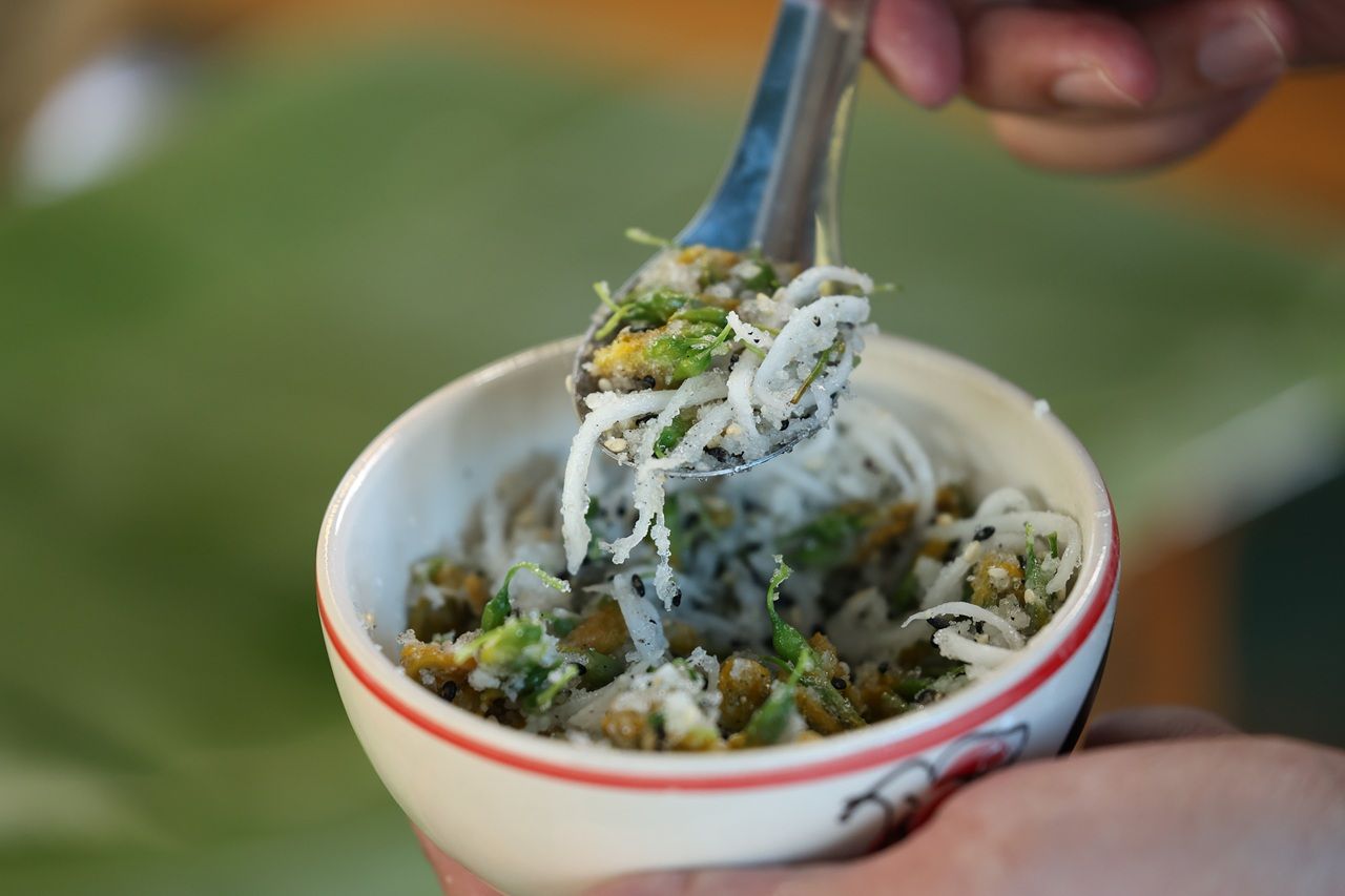 “ดอกโสนมีความขมเล็กน้อย แต่ด้วยภูมิปัญญาของคนอยุธยาสมัยโบราณที่นำดอกโสนมาคลุกกับแป้งข้าวเจ้าแล้วเอาไปนึ่ง จากนั้นโรยด้วยมะพร้าวกับน้ำตาล ก็ทำให้มีรสชาติที่อร่อยลงตัวมากๆ” คุณสุวรรณกล่าว