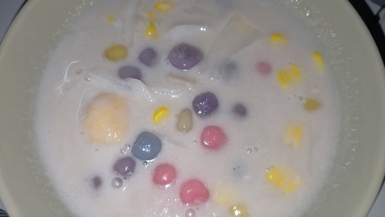 ไฮไลต์ คือ แป้งทำเอง เหนียวนุ่มหนึบหนับ หอมกลิ่นใบเตยเตะจมูก เข้ากันดีกับน้ำกะทิรสชาติกลมกล่อม หวานมันกำลังดี พร้อมจัดเต็มเครื่องแน่นๆ ไม่หวงของ สั่ง "บัวลอยทรงเครื่อง" จะได้ทั้ง ข้าวโพด, แปะก๊วย, เผือก และมะพร้าวอ่อน ในราคาเบาๆ เพียง ถุงละ 25 บาท (ใส่ไข่ 30 บาท)
