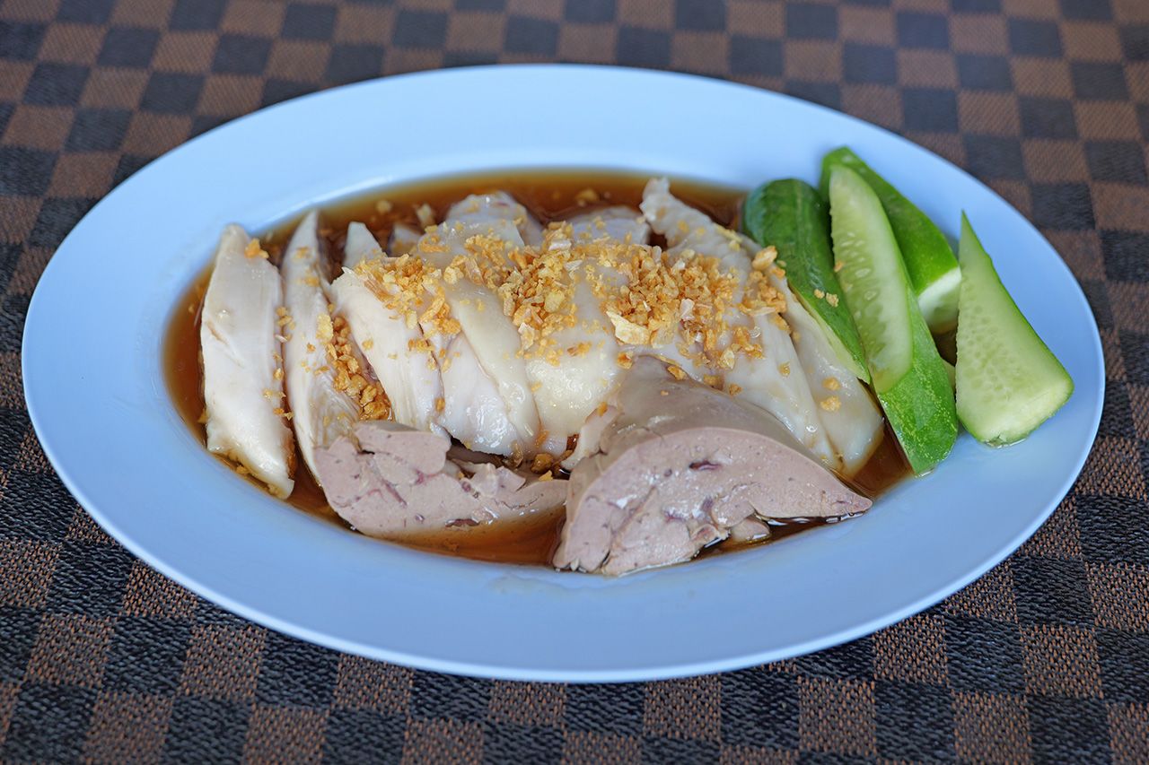 ไก่ต้ม : ชิ้นหนา นุ่ม ไม่ตบ ไม่หลอกลวงลูกค้า เคี้ยวแล้วเด้งสู้ฟัน โดยไก่มี 2 สายพันธุ์ให้เลือก ทั้งไก่ตอน และไก่บ้านตอน โดยเนื้อสัมผัสมีความแตกต่างกัน ต้องลอง