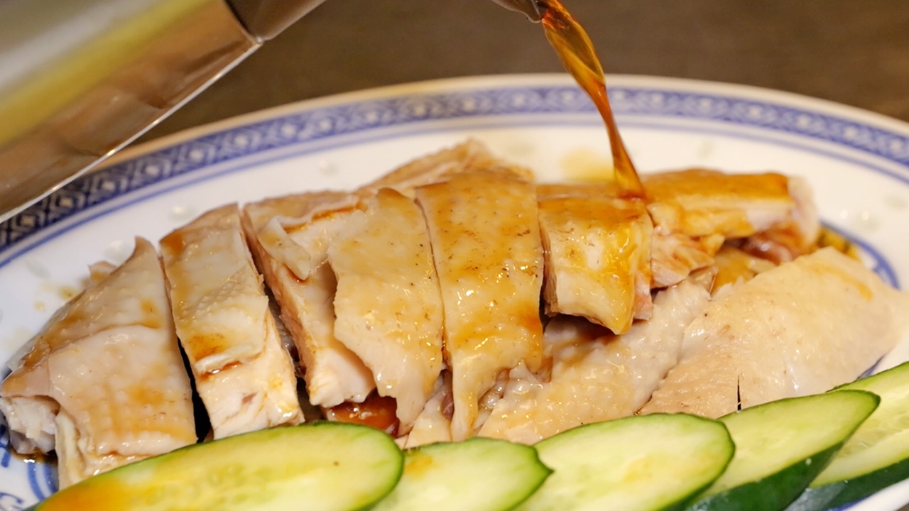 - ก่อนเสิร์ฟทางร้านจะราด ซีอิ๊วปรุงรส ที่มีความหอมของน้ำมันงาและน้ำมันกระเทียมเจียว สูตรนี้จะช่วยชูรสชาติเนื้อไก่ให้เข้มข้นขึ้น โดยไม่ต้องพึ่งน้ำจิ้มในคำแรกเลยทีเดียว