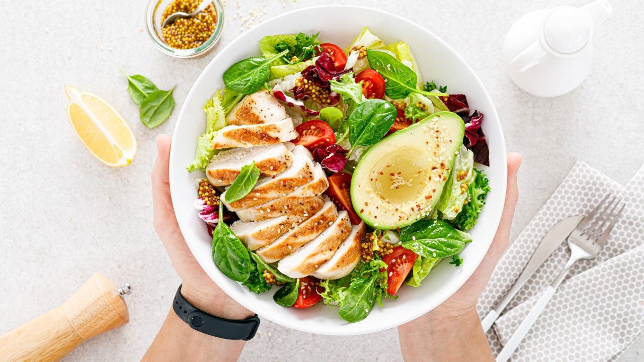 เมนูเบาๆ ที่เหมาะกับทุกช่วงเวลา นำอกไก่ย่างหั่นชิ้นบาง วางบนผักสลัดหลากสี เช่น ผักกาดแก้ว มะเขือเทศ และแครอทราดด้วยน้ำสลัดไขมันต่ำ หรือโยเกิร์ตรสธรรมชาติผสมมะนาว ได้รสเปรี้ยวสดชื่น ช่วยเพิ่มความอยากอาหารแบบไม่ต้องกังวลแคลอรี