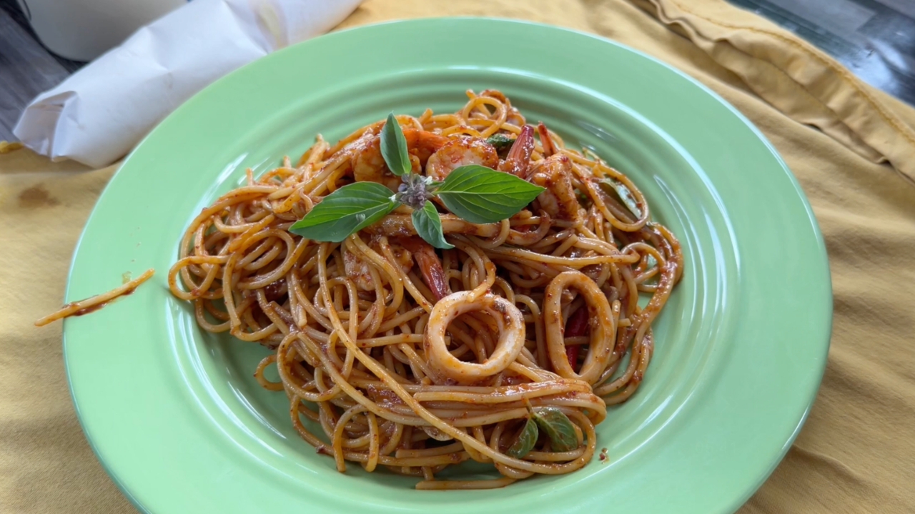 เมนูเด็ดที่ลูกค้ามาแล้วต้องสั่งคือ ข้าวกะเพรากุ้งรสเด็ด ข้าวผัดสับปะรด โป๊ะแตกทะเลรสแซ่บจัดจ้าน ผัดเผ็ดหมูป่า และสปาเกตตีพริกเผา ซึ่งเชฟกระซิบว่า หากสั่งอาหาร 5 อย่างนี้ในโรงแรมหรู อาจต้องจ่ายบิลไม่ต่ำกว่า 2,000 บาท แต่ที่ร้านของเขา ลูกค้าสามารถอิ่มอร่อยยกโต๊ะได้ในราคาไม่ถึง 400 บาทเท่านั้น