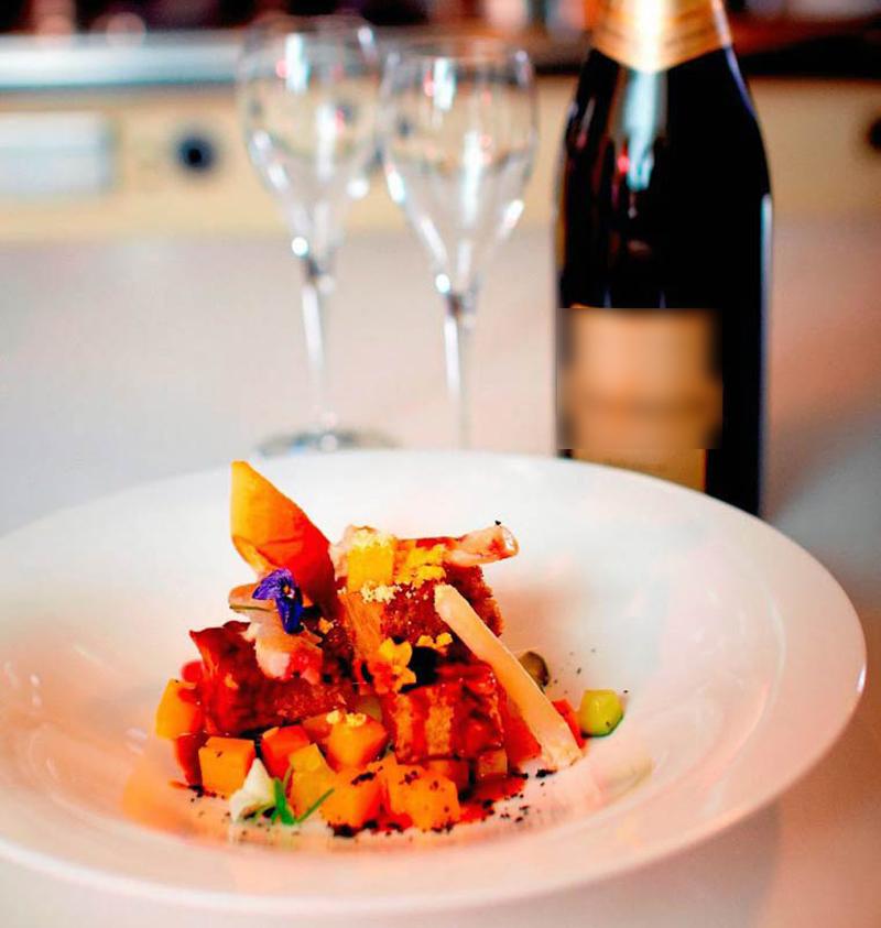 “เชฟมิกโก อันเตโร กาตายา” หัวหน้าเชฟประจำห้องอาหารเรดสกายและฟิฟตี้ไฟว์ โรงแรมเซ็นทาราแกรนด์ฯ เซ็นทรัลเวิลด์ ภูมิใจเสนอ “นกกระทาอบราดด้วยคอนยัคกับหัวหอมและถั่วฮาเซลนัท” โดยเริ่มจากการคัดสรรนกกระทาฝรั่งเศสขนาดพอเหมาะ นำมาหมักเครื่องเทศ แล้วทอดในน้ำมันฮาเซลนัท ราดด้วยซอสคอนยัคกับหัวหอมและถั่วฮาเซลนัท จานนี้ราคาเพียง 1,800 บาท++