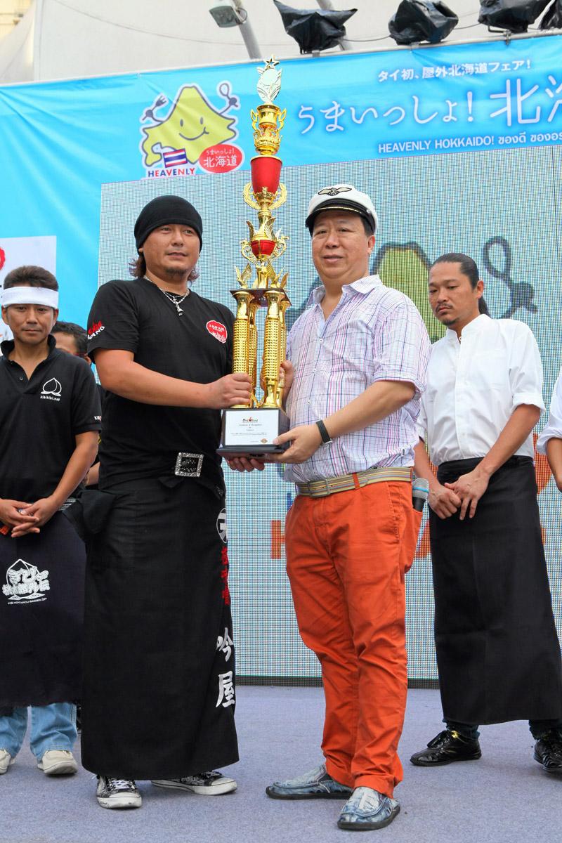 สำหรับ 6 เชฟระดับเทพจาก 6 ร้านราเมนดังจากประเทศญี่ปุ่นที่มาร่วมแข่งขันได้แก่ เชฟทสึจิตะ เจ้าของร้านนิไดเมะ นำเสนอเมนู นิไดเมะ โอนิ ทสึเคเมน หรือราเมนแยกเส้น แยกซุป ส่วน เชฟมาเอจิมะ จากร้านเซตากายะ โตเกียว มาพร้อมเมนู ไทคุโซ คารามิ ทสึเคเมน ที่นำน้ำมิโซะสูตรพิเศษมาผัดกับเส้นราเมนอย่างรวดเร็ว ด้าน เชฟวาตานาเบะ จากร้านคิบิ ได้สร้างสรรค์เมนูเรด ฮอต โทมาโท โทริ ไพตัน ที่มีเคล็ดลับอยู่ที่ซุปกระดูกไก่ เคี่ยวนานถึง 8 ชม. อีกหนึ่งผู้ท้าชิง เชฟคาวาโมโต้ และ เชฟฮาระ จากร้านโกะคุมิโสะ จัดเมนูฮิยาชิ ชูกะ ราเมน ราเมนเย็นที่มีเคล็ดลับอยู่ที่การคิดค้นชามราเมนแบบโคลด์สโตนขึ้นเป็นครั้งแรกในโลก ตามด้วย เชฟทาเคดะ จากร้านโชะได เคสุเกะ ที่ส่งเมนู Miso Tsukemen ที่มีเคล็ดลับอยู่ที่การทำมิโซะที่มีเอกลักษณ์ เฉพาะตัว ปิดท้ายด้วยเมนูราเมนของ เชฟอิดะ แห่งร้านไทโชเคน ที่นำความหวานของซุปหมู ไก่และปลามาผสมกับซอสงาสูตรเข้มข้น และโปะหน้าราเมนด้วยพาเมซาน และเชสด้าชีสจากฮอกไกโด.